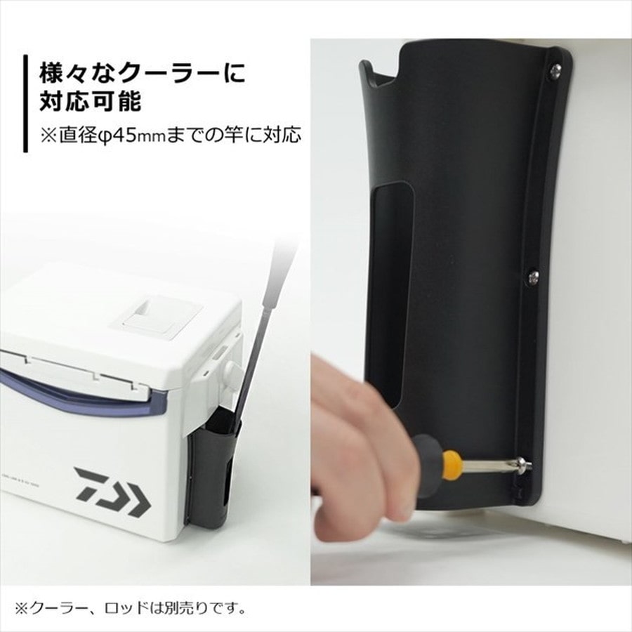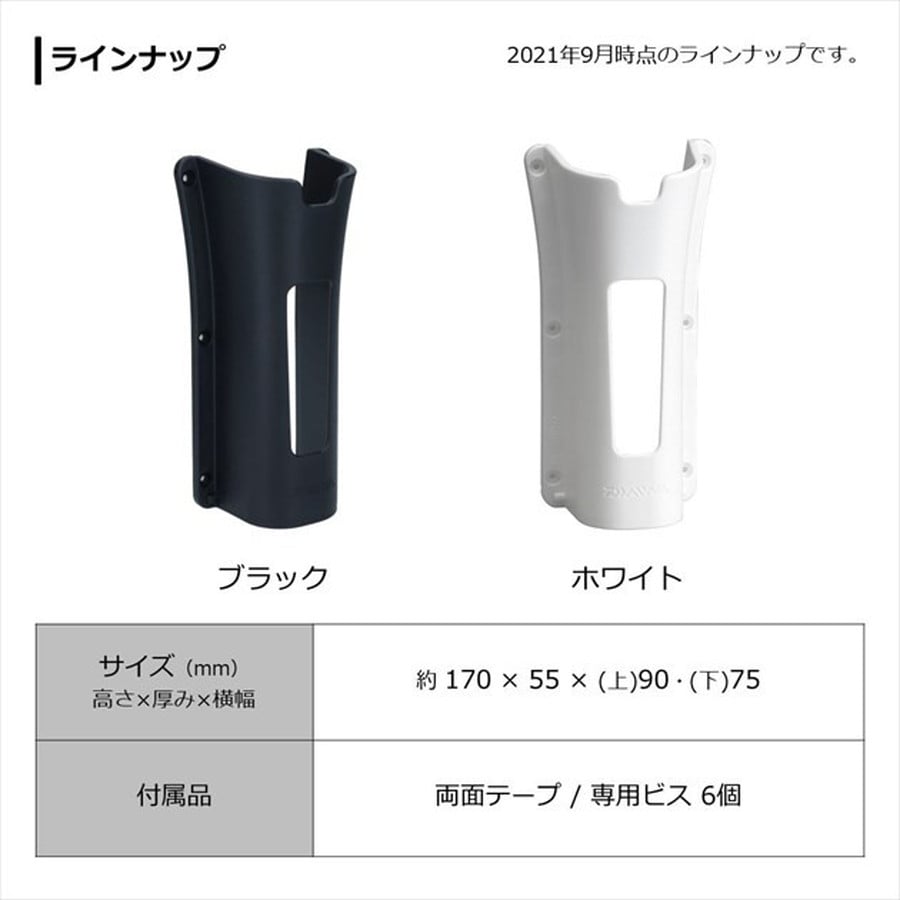 予備のロッドや玉の柄をセットできるキーパースタンド。直径約Φ45mmまでのロッドに対応。取り付けが簡単な専用ネジ+両面テープ付き。★サイズ 長さ×厚み×横幅:約170mm×55mm×90mm(上)・75mm(下) 付属品:両面テープ、専用ビス6個 ※実物と色が違って見える場合があります。あらかじめご了承下さい。