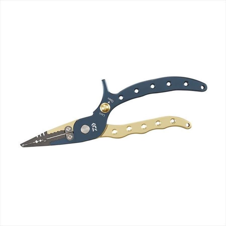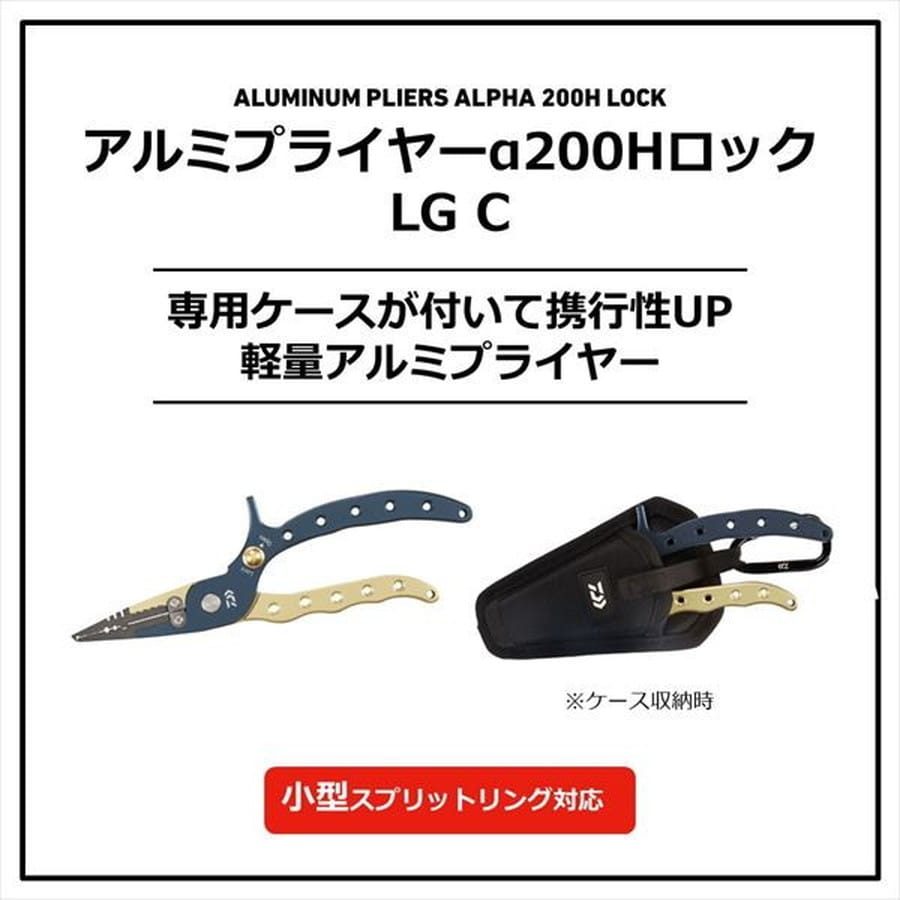 小型スプリットリング対応、ワンタッチロック機能付き軽量アルミプライヤー ■小型スプリットリング対応(#2-#7) ■アルミプライヤーで軽量化を実現(約:135g) ■収納時便利なワンタッチロック機構。 ■安全安心なセーフティガード付き。 ■PEライン対応ラインカッター。 ■フッ素塗装で錆びにくく汚れも落ちやすい。 ■ラインカッター・ワンタッチロック・先端ステンレスはSLPでアフター対応可能。