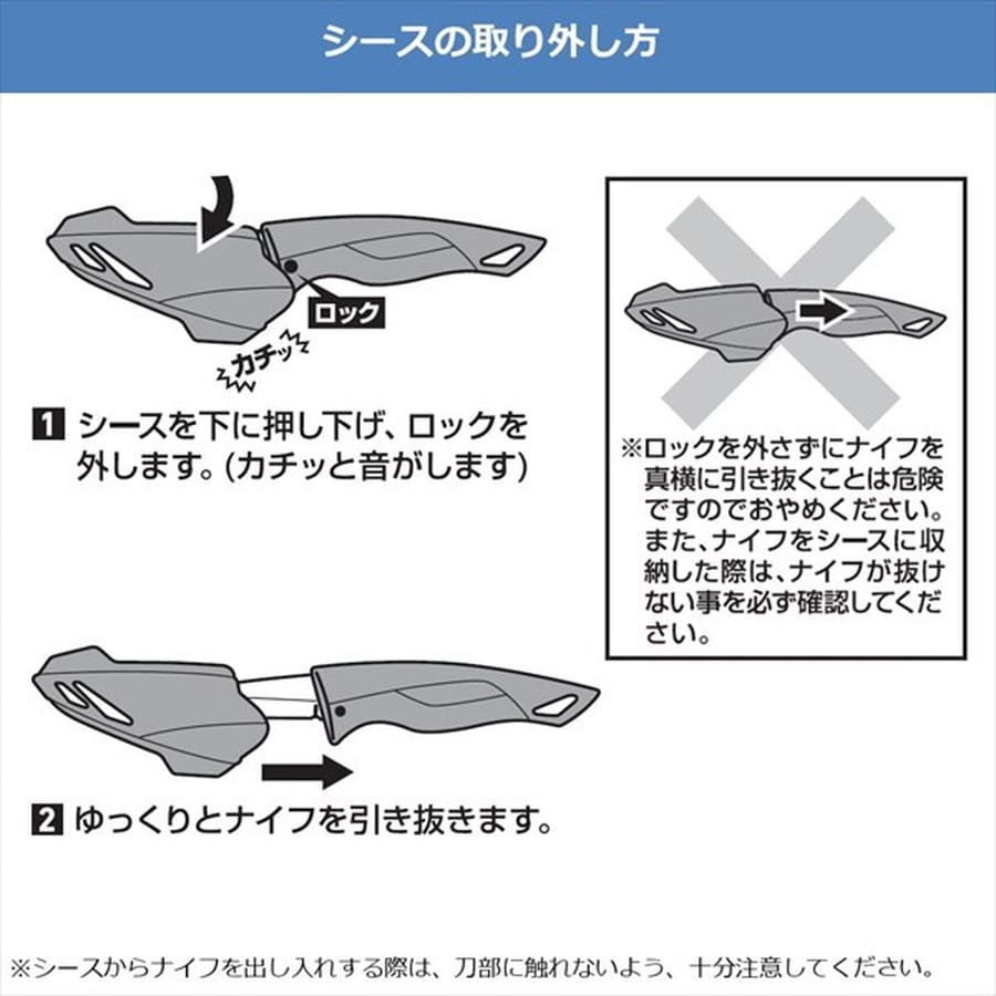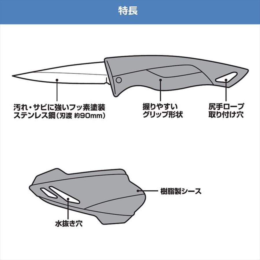 魚を〆ることに特化した先鋭形状、シース付きナイフ ■切り口が目立ちにくい先端薄刃仕上げ。 ■力を入れやすいグリップ形状。 ■カチッと着脱可能なシース付き。 ■刃にはフッ素塗装を施し錆びにくく汚れも落ちやすい。