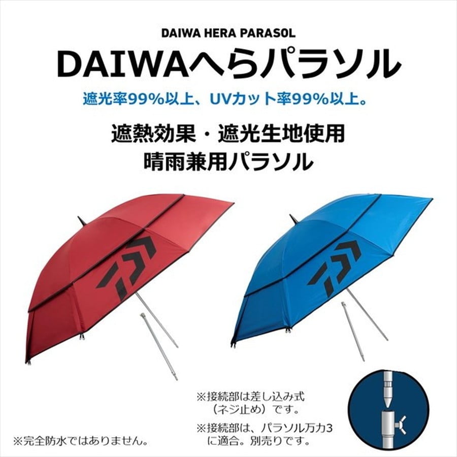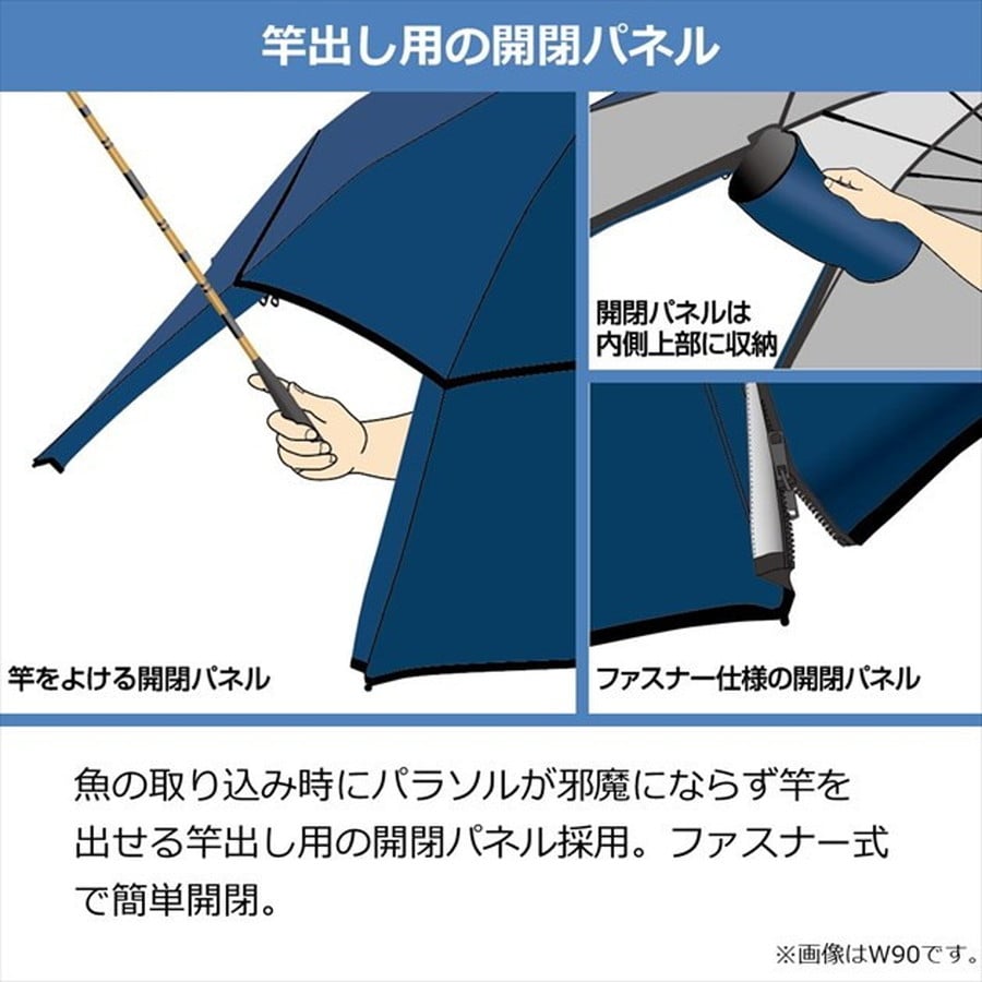 快適な釣りを提供する新サイズパラソル ●傘直径約160cm(親骨:約90cm)日光と雨から体と荷物を守る。●竿出し開閉パネル採用で振り込みや取り込みがスムーズ。●二枚張りによるベンチレーション構造採用で内側に風が抜け易く、熱を溜めにくい。●ポリエステル生地で遮光率・UVカット率99%以上。★カラー:ブルー 傘直径:約160cm ※実物と色が違って見える場合があります。あらかじめご了承下さい。