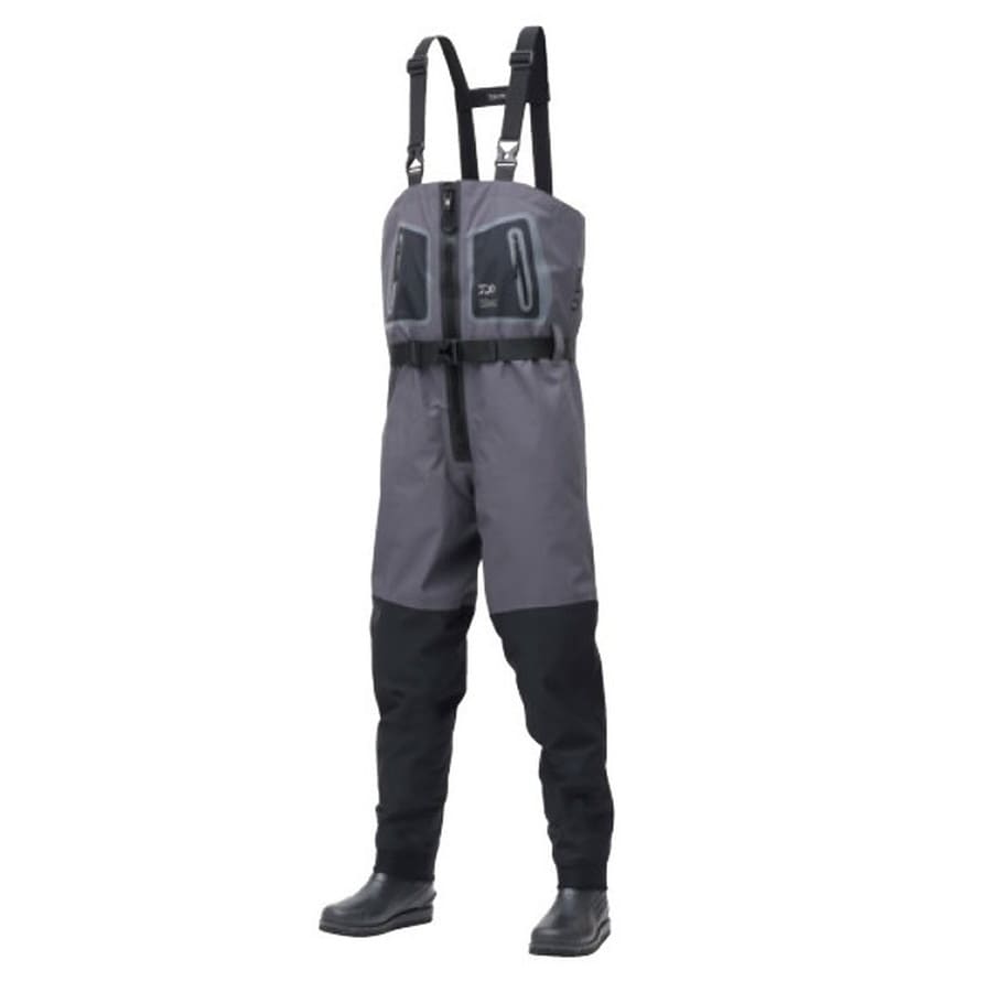ダイワ初のフロントフルオープンファスナーを採用!!フルオープンになるので、着脱が楽。ウェーダー内のムレも一気に放出。タイトフィットモデルでありながら、立体裁断で歩行性が向上。不快なムレを低減するダイワ独自のウェーダー専用4層構造防水透湿素材「ブレスアーマー」採用。ブーツと生地の接続部分はダメージを軽減するカバーシステム採用。オリジナルウレタンインソール採用。クッション性、通気性アップ。屈曲性とグリップ性に優れたスーパーキュービックセンサーソール(フェルトスパイクソール)搭載。屈曲性が高く軽量で紫外線劣化に強いPVC一体成型ブーツ。ショート丈で高い機動性能。ファスナー付きポケット搭載(ポケットは防水仕様ではありません)