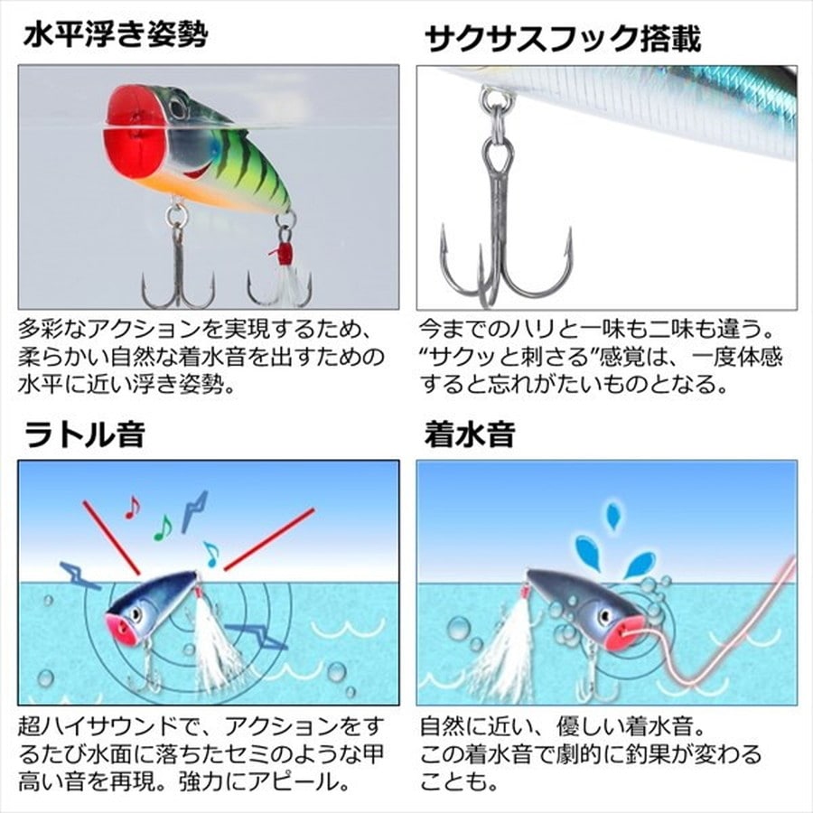 サイズ:70mm 自重:12.4g フック仕様:サクサス加工トレブル♯4 ※実物と色が違って見える場合があります。あらかじめご了承下さい。