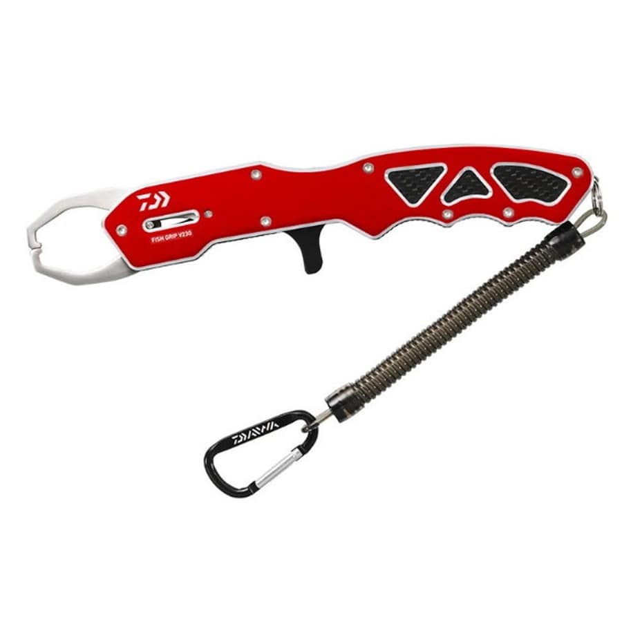 両開き構造で魚をホールドしやすい「フィッシュグリップV」。手馴染みが良いグリップ形状。ステンレス刃採用で高強度。尻手ロープ搭載で紛失防止