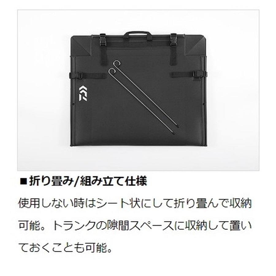 車のトランク内等の濡れ物、汚れ物の収納に便利。「バッグ、クーラー、鮎用品」等、さまざまな用品の収納に便利。不使用時にはコンパクトに収納できる折り畳み・組み立て仕様。濡れ物にも対応する防水生地、防水構造。濡れ物からしみ出した水にも安心。収まり良く、出し入れし易い高さ10cmサイズ。本体の立体を保持するピン付き。丸洗いでき、お手入れ簡単なEVA素材採用。★本体外寸:約57×72×11cm 組み立て時の本体内寸:約56×71×10cm ※実物と色が違って見える場合があります。あらかじめご了承下さい。