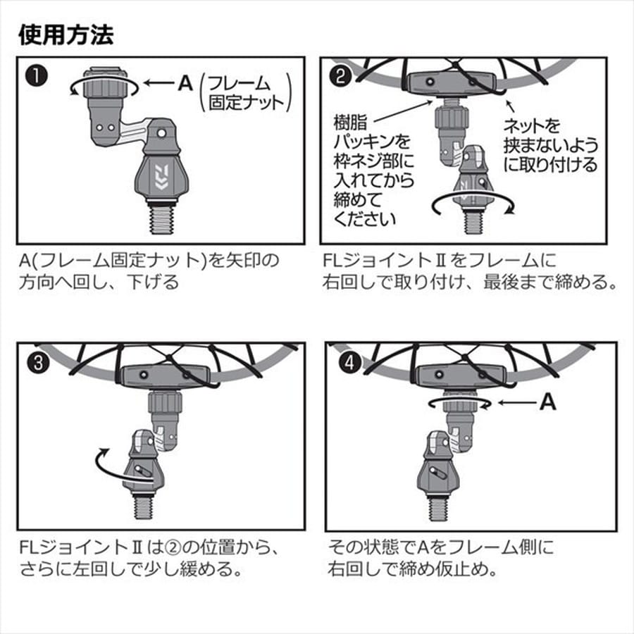 さらに使いやすくなってリニューアル、タモ網をコンパクト収納する便利グッズ。振り出し時は、振り出すだけでタモ網をすぐに展開可能。簡易ロック構造の為、タモ網のばたつきを防止できる。折り畳む時は、FLフィンを回すことでロックを解除可能。市販のランディングネットのネジと同じ仕様(W1/2山12)で市販品に取り付け可能。網のバタツキ防止Oリング付き