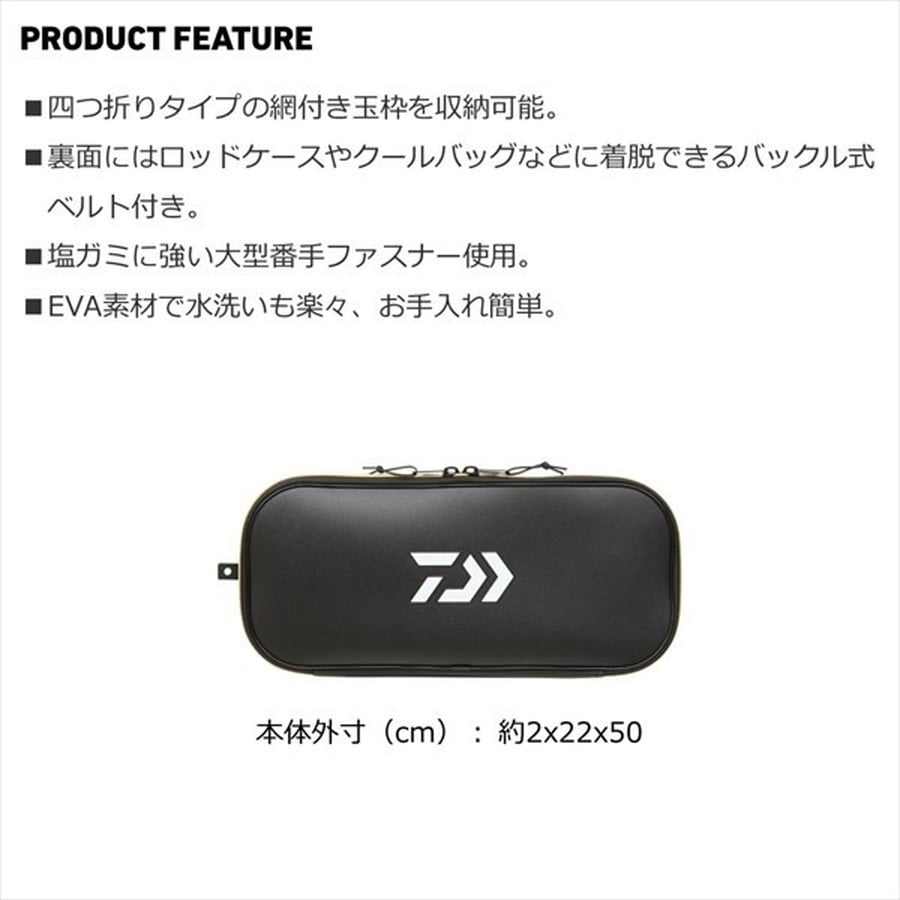 濡れた玉枠もスッキリ収納できる便利な専用ケース。●四つ折りタイプの網付き玉枠を収納可能。●裏面にはロッドケースやクールバッグなどに着脱できるバックル式ベルト付き。●塩ガミに強い大型番手ファスナー使用。●EVA素材で水洗いも楽々、お手入れ簡単。