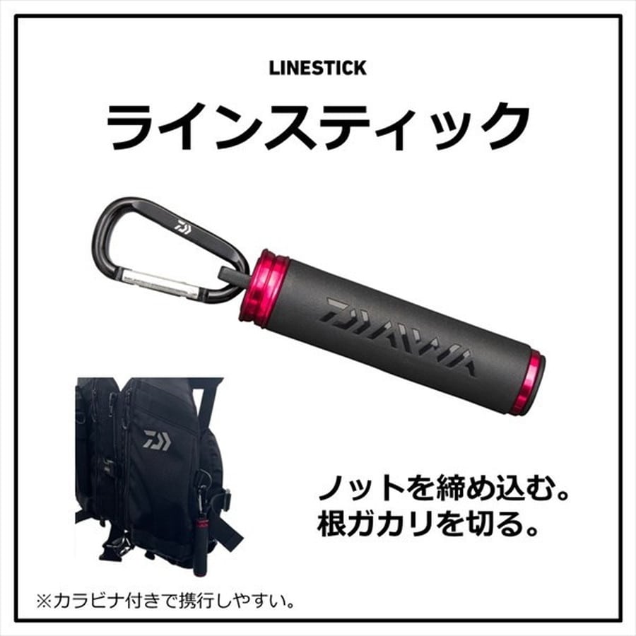 ノットを締め込む!根がかりを切る!ノット結束の仕上げに締め込んで強度UP!すっぽ抜け防止!カラビナを外して押し出すだけで2本の締め込みスティックに簡単に分離可能。■解消できない根ガカリの切断に。■カラビナ付きでバッグやライフジャケットなどに取り付け可能。■ラバー部は高強度TPE素材を採用、ノット締め込み・ライン切断共にPE4号まで対応。※使用時はラインをらせん状に6周以上強く巻き付けて使用してください。