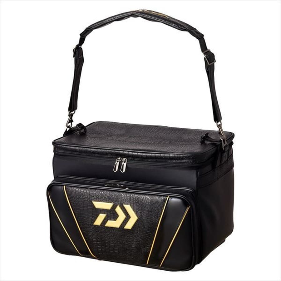 特別感を追求したダイワへらバッグの最高峰!迫力と存在感のあるクロコダイル調のデザインを採用。カラーリングにもこだわり特別感のあるへら専用バッグを実現。本体は汚れや水に強い防水生地を採用し、お手入れが簡単。内部にはハードインナーを内蔵しており、お手入れの際に取り外し可能。エサやゴミ等のお手入れも簡単に行うことが可能。背面のスリットポケットは2WAY仕様。玉網やフラシ、シート等を入れるポケットとして使用、キャリーカートを取り付けて使用することが可能。★素材:PVC カラー:ブラックゴールド 本体:約36x50x36cm 自重:3.8kg