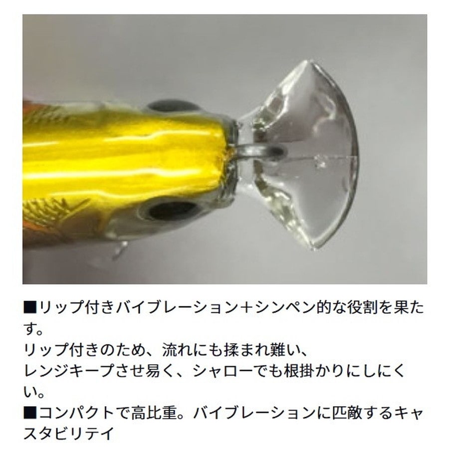 干潟等シャローのデイゲームに最適。リトリーブ速度で変わる可変アクション&高比重コンパクトシンキングミノー。スローではシンキングペンシルのようなスイングアクション、ファストではバイブレーション的なハイピッチタイトウオブンロールアクション。バイブレーションでは攻略が難しい流れの中でもレンジキープさせ易く、高速時(65S:約20cm~50cm、70HS:約50cm~80cm)スロー時(65S:約50cm~150cm、70HS:約70cm~150cm)のレンジを攻略可能。明滅効果の高いハーフスケール&セミフラットサイドボディ仕様。