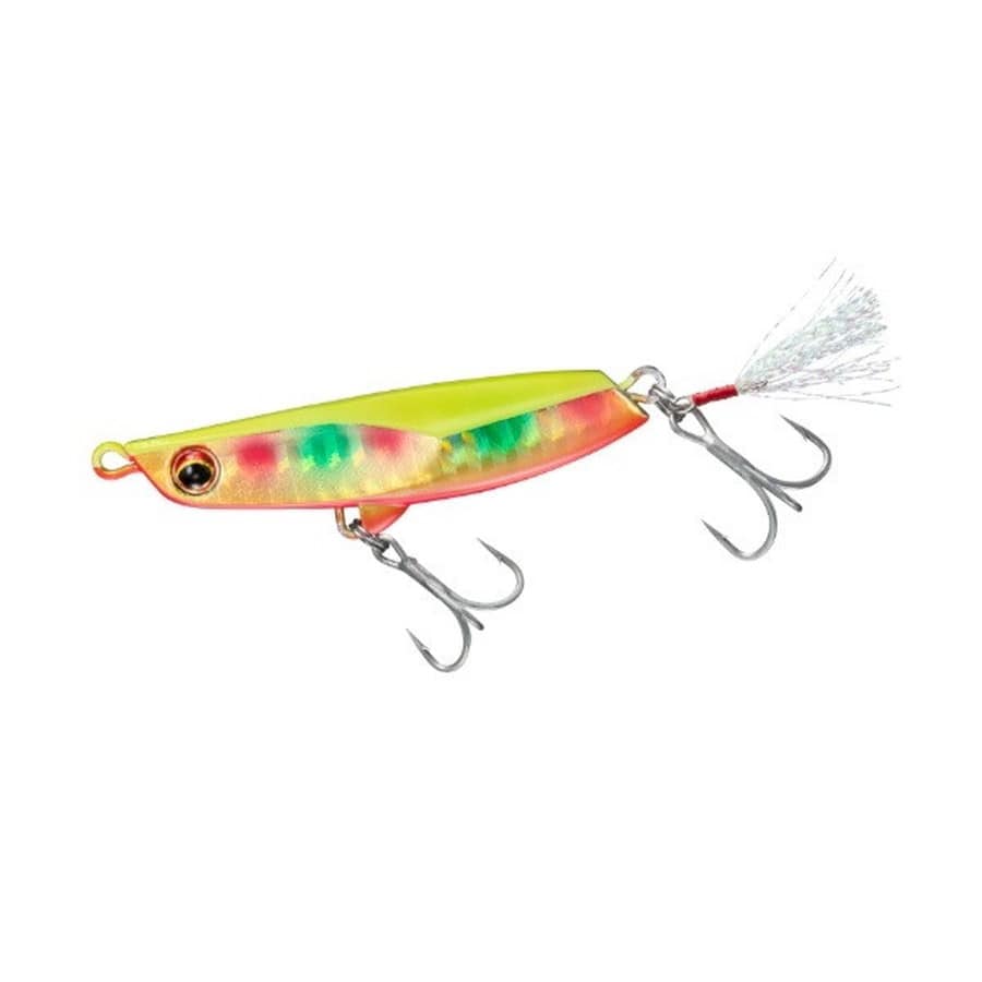 初代ヒラメ王「高橋慶朗」監修。ボトム、沖合いのブレイクに潜むヒラメ・マゴチ攻略用コンパクト2-フックキャスティングジグ。■コンパクト&カッ飛び 2-トレブルフックメタルジグ ■ヒラメタル譲りの多面高フラッシング構造(左右対称) ■前後のフック絡みを解消するフックポジションリミッター ■着脱可能バイトマーカーティンセル塔載 ■傷に強いHD塗装仕上げ