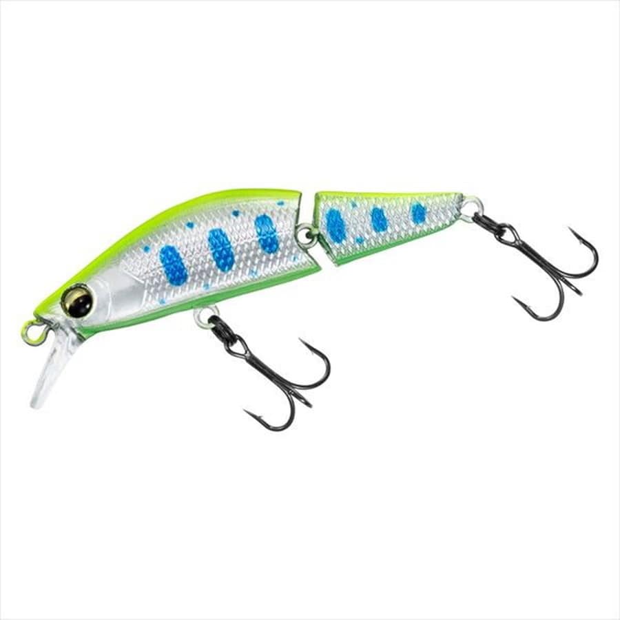 ジョイントボディ特有の移動距離を抑えた艶めかしいクネクネアクション。品質は信頼のMADE IN JAPAN。一般的なシンキングミノーのキビキビとしたアクションにスレてしまった渓流魚にも生命感あふれる艶めかしいアクションでスイッチを入れる。■震わせるほどのロッドワークでもジョイント部分がクネクネと動き、小渓流や枝沢などルアーを通せるスペースが僅かなポイントでも移動距離をおさえて点で口を使わせることができる。■沈む速度もややスローに設計され、水深20~30㎝ほどの激浅に潜むイワナ等のチェイスにも対応