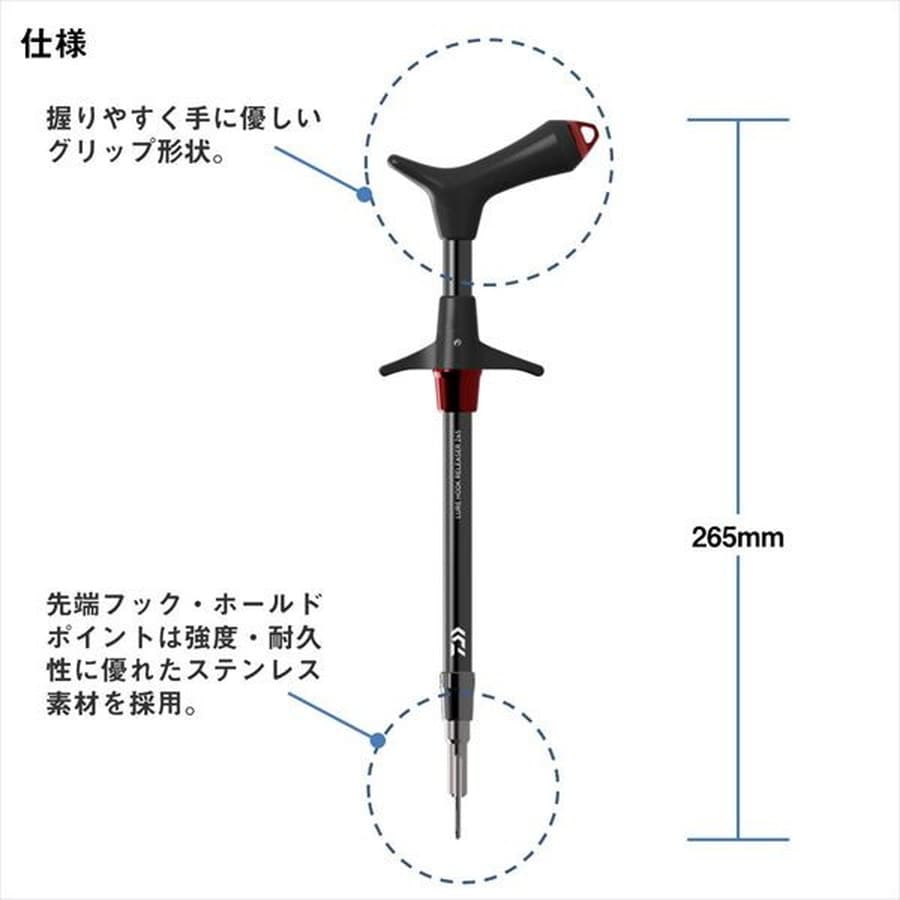 ルアーフックを素早く安全にリリース、持ちやすいグリップ形状。シングルフック#1/0~#12、トレブルフック#2~#12対応。針を掴む先端のフックホールド部は強度・耐久性に優れたステンレス素材を採用。先端部φ6.5mmの細径フックホールド部は魚の腔内のフックも見やすくつかみやすい。【ダイワ キャスティング情報2024】★サイズ:約265mm