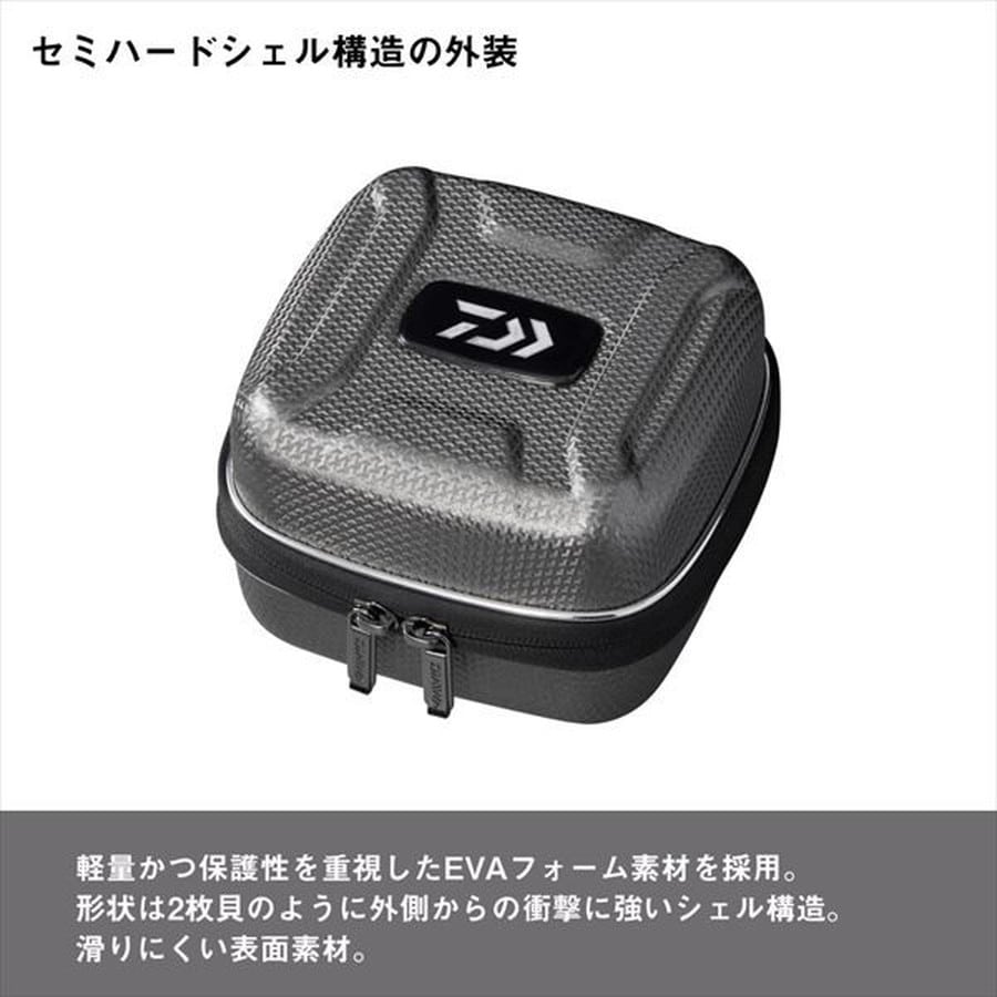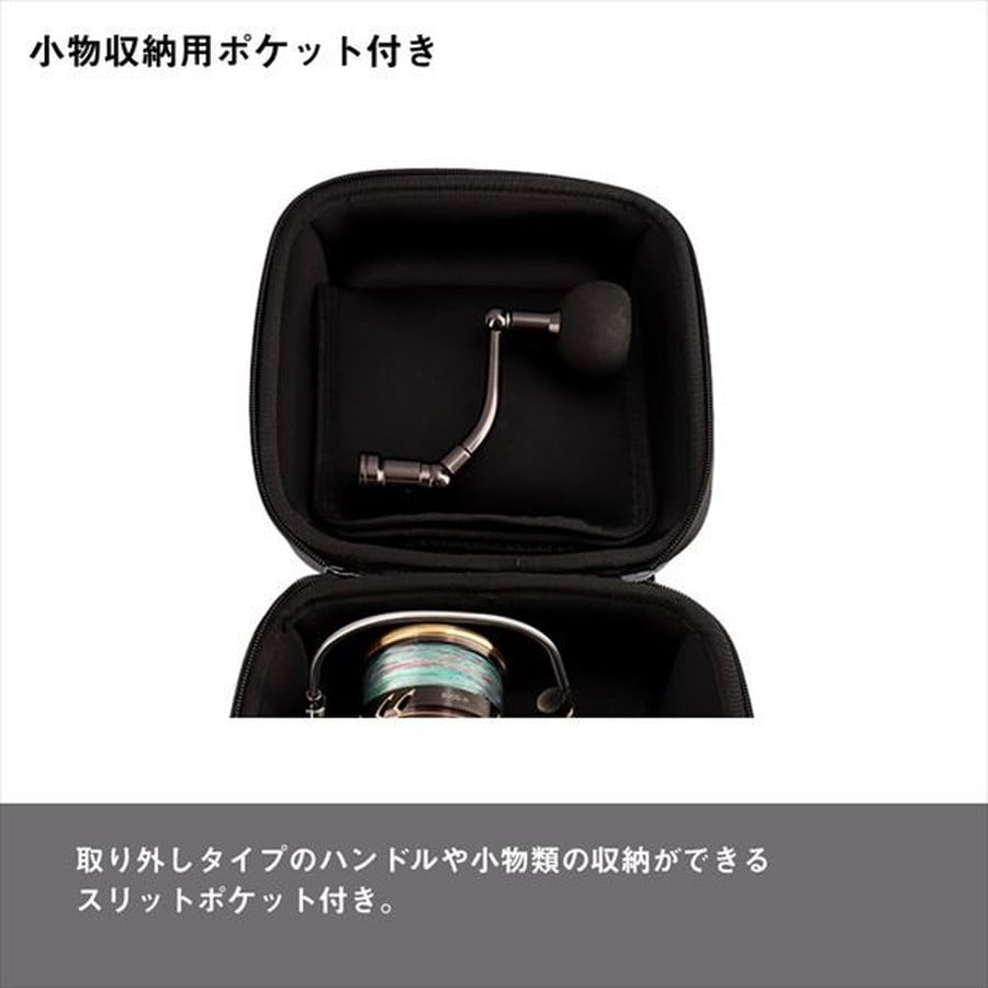 衝撃に強いセミハードシェル構造のリールカバー!本体部は外側からの衝撃をやわらげるEVAフォーム素材採用。滑りにくい表面素材。◆本体内部はリールの傷つきを抑えるクッション材入り生地を採用。◆リールハンドルや小物の収納が可能なポケット付き。◆ヒンジ部分にメッシュ生地を採用し内部の蒸れを抑える
