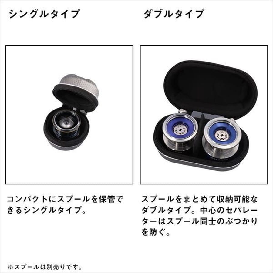 衝撃に強いセミハードシェル構造のスピニング用スプールカバー!本体部は外側からの衝撃をやわらげるPPボード採用。◆本体内部はリールの傷つきを抑えるクッション材入り生地を採用。◆ヒンジ部分にメッシュ生地を採用し内部の蒸れを抑える。◆カラビナ等の取り付け可能なループ付き。開閉時につまみとして使用すると開けやすい。◆ダブルタイプはスプール同士のぶつかりを防ぐセパレーター付き★タイプ:ダブル 本体外寸:約9×18.5×9cm スプールサイズ:8000×20000、投げ用 ※糸巻量が多いとファスナーに干渉する場合があります。
