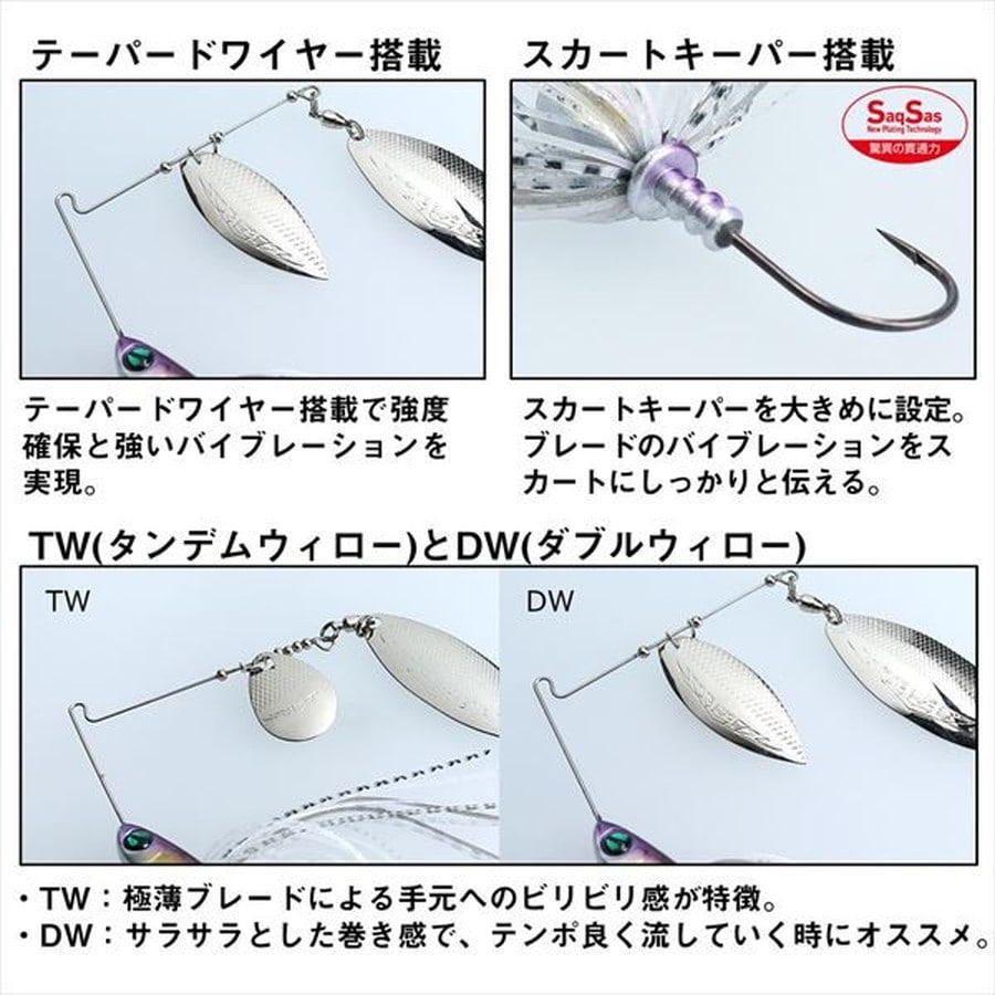 テーパードワイヤー搭載。釣れるアクションの具現化。開発コンセプトは「とにかく使いやすく、釣れるスピナーベイト」。 「サイズが小さい」という意味ではないその絶妙なコンパクトボディは、質量の小ささを求めただけではなく、すべての釣れる要素をより凝縮したフォルム。ストレスなく一日中投げ続けられるキャスタビリティ 。濃いカバーをものともしない障害物回避性能。はるか遠くのバスをも寄せてくる高いアピール力。掛けたビッグバスを逃さない強靭なフック。すべてのパーツを高いバランスで組み上げたスピナーベイトの最終形、それがこのスティーズスピナーベイトだ。★重量:3/8oz