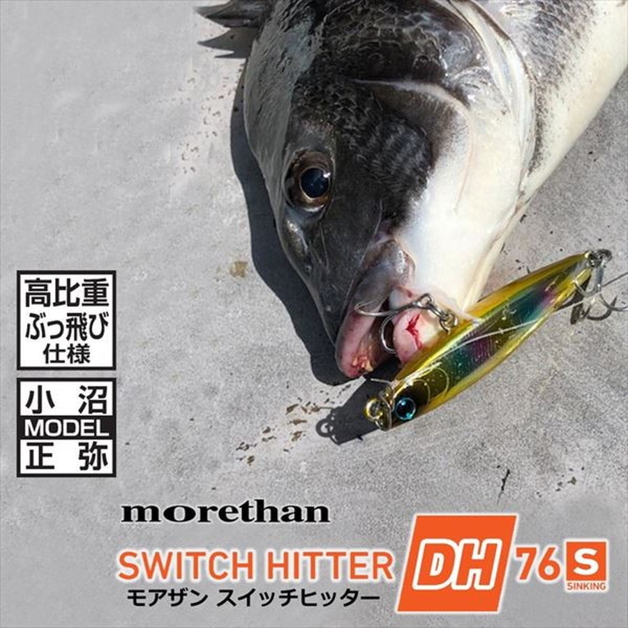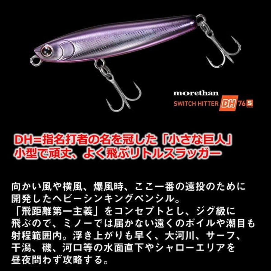 小沼正弥監修。「DH=指名打者」の名を冠した「飛距離第一主義」のホームランバッター。向かい風や横風、爆風時、ここ一番の遠投のために開発したヘビーシンキングペンシル。「飛距離第一主義」をコンセプトとし、ジグ級に飛ぶので、ミノーでは届かない遠くのボイルや潮目も射程範囲内。浮き上がりも早く、大河川、サーフ、干潟、磯、河口等の水面直下やシャローエリアを昼夜問わず攻略する。★全長:76mm