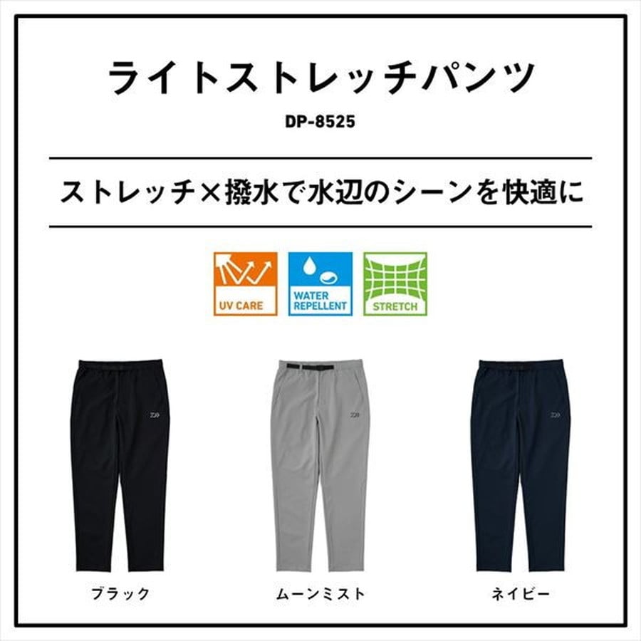 ストレッチ×撥水で水辺のシーンを快適に。釣りでの動きを妨げにくいストレッチの素材に撥水加工を施し、普段使いから水辺のアウトドアまで幅広くカバーする。動いてもずり落ちにくいバックルベルト付き。右後ろには水辺のアウトドアシーンには欠かせないファスナーポケットを搭載。★サイズ:XL