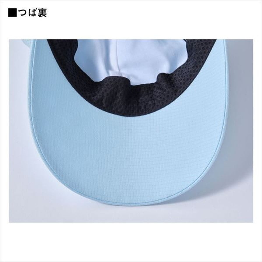 通気性と撥水性能を両立したキャップ。全面に通気性に優れたドットエア●素材を採用。通気性がありながら撥水性も兼ね備える。つば芯にも通気孔を設けることで、軽量で風に飛ばされにくい設計。サイズ調整はスピンドル紐で片手でも調整しやすい