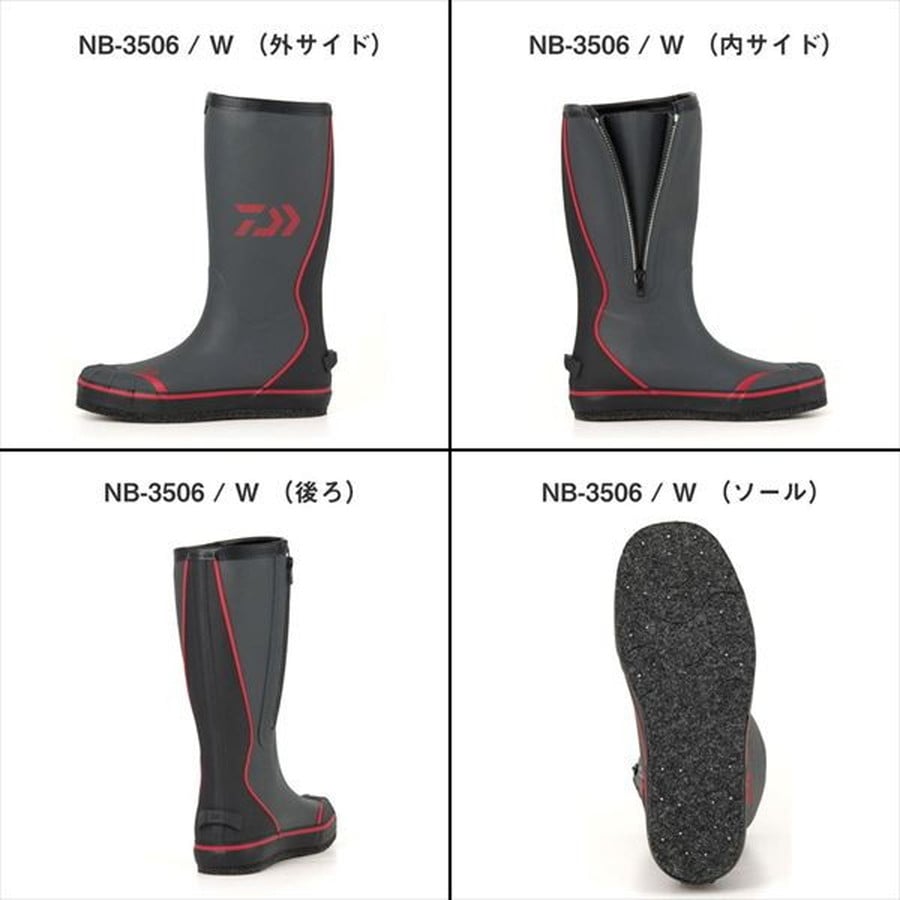 機能性と快適性を両立した高性能フィッシングブーツ誕生!あらゆるフィッシングシーンに対応する、ダイワの本気ブーツ。◆新しく採用した軽量・高柔軟性の特殊発泡ゴムを本体素材に採用。高次元の柔らかさと伸縮性を実現。前モデル比で約20%の軽量化。突っ張り感がなく足にしっかりフィットし、長時間の使用でも快適な履き心地が続く。 ◆サイドファスナー仕様で着脱もスムーズ ◆ダイワ独自の足型設計により、フィット感・機動性・履き心地をさらに追求 ◆ブーツのかかとに設けられた「キックオフ」で手を使わずに素早く脱げる ◆内部にはノンスリップインソールを採用し、足ズレを防止 ●NB-3506 / W 高い屈曲性とグリップ性能を備えた「スーパーキュービックセンサーソール」を採用し、多様なフィールドに対応。