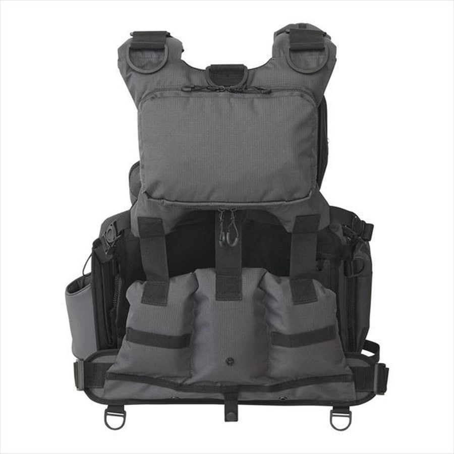 軽量化を追求した機能充実のフラッグシップモデル。肩への荷重を効果的に腰に分散させる設計に改良し、快適性が向上。設計を見直し自重を軽量化。長時間の使用でも負担を大幅に軽減。左腰ポケット前面にローテーションポケットをファスナー開閉式に改良。ショルダークッションを増量。肩への負担を軽減。ターポリンポーチのファスナー端にピンオンリールを取り付けが可能。背面のショルダーベルト固定方式は自分の好みの位置でポーチを固定することが可能。右腰のミニポケットに間仕切りを設けて、糸くずを取り込みやすいダストポケット機能。メインの拡張腰ポケットの出し入れ角度を改良し、拡張の前後でも出し入れのしやすさを改善。浮力材を着脱方式に改良し、洗濯が容易に。背中のパッド中央に溝を設け、通気性を確保することにより夏場のウェーディングで不快な肩から背中にかけての蒸れを軽減。ベンチクールシステム(背部の分割)と相まって、より快適な釣りを実現。