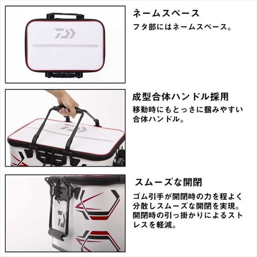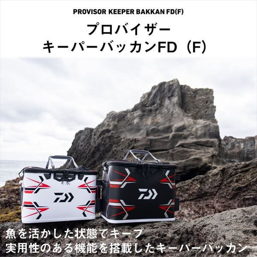 魚を活かした状態でキープ!実用性のある機能を搭載したキーパーバッカン!磯釣りのシチュエーションを考慮して実用性を追求したキーパーバッカン。◆魚のサイズを確認できる簡易メジャー付き。◆魚を投入しやすい変則ラウンド形状の投入口。◆セパレーターベルト付きエアポンプホルダー。◆配合エサを入れられるスペースを確保★サイズ:外寸約33×50×40cm