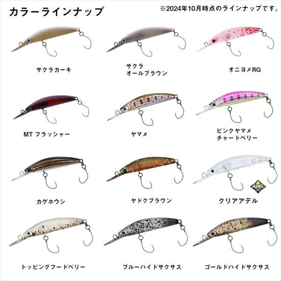 HMKLとコラボして開発したフローティング釣法のダブルクラッチに追加カラーが登場!HMKL監修によるエリアで実績のあるこだわりのカラー。■ゴールドハイドサクサス・・・ブラウン系の飛ばし塗装に実績のあるゴールドパールを吹き、テールとフロントフックアイから前方にかけてのべりーを黒系ガンメタ塗装。これの意味は「巻いて潜らせ浮かせて食わせる」の釣りにおいて後方から追ってくるトラウトに対してサクサスフック(黒系ガンメタ色)の存在を隠す事、また、バイトマーカーとしての役割を果たす。