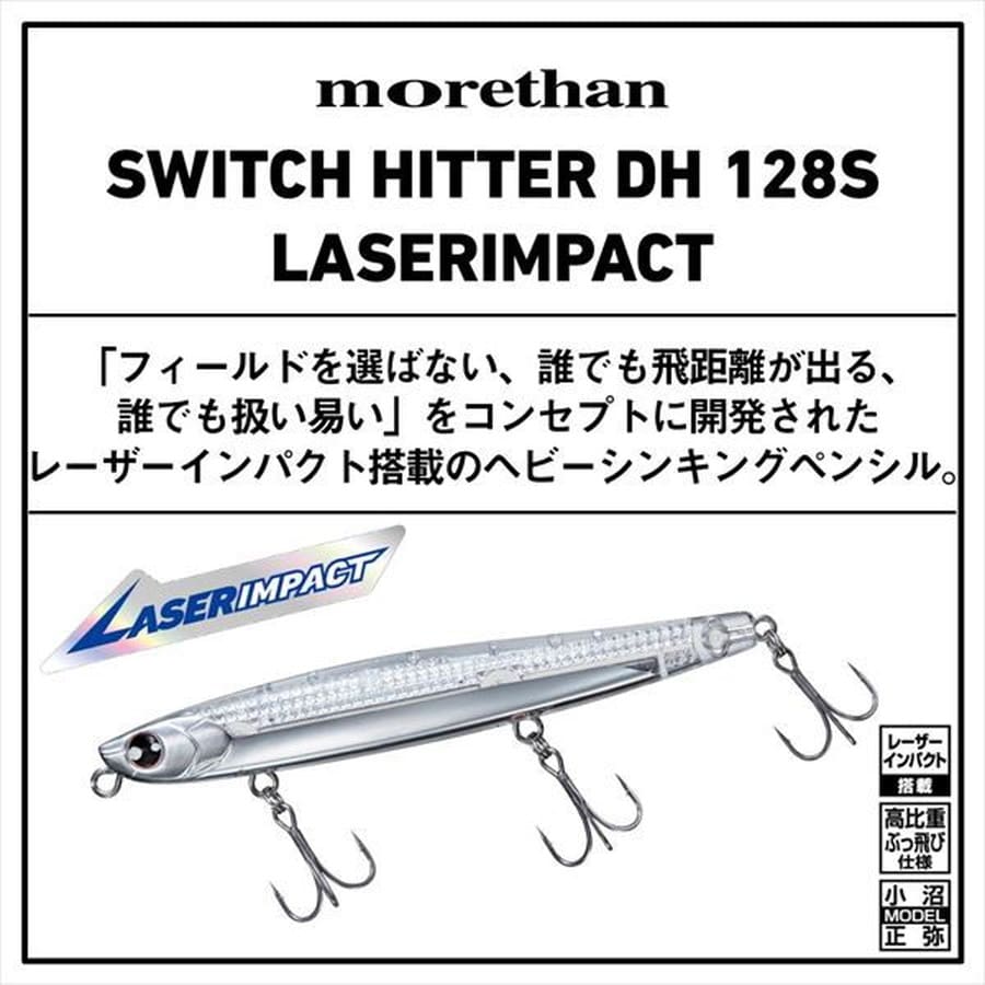 「フィールドを選ばない、誰でも飛距離が出る、誰でも扱い易い」レーザーインパクト搭載。DH=指名打者の名を冠した「飛距離第一主義」のDHシリーズに128mm/45gのブッ飛びモデル登場!「向かい風、横風、爆風」など荒天下においても安定感抜群の飛行姿勢で誰でも簡単に遠投が可能。ルアーの届かない沖のボイルや潮目は攻略不可能で、ただ眺めることしかできない。この状況を打開するにはとにかく飛ぶことで、DH128S-LIはこの課題を克服するために誕生した。アクションはテールスライドアクション。リップ付きルアーの水流を嫌がるスレた河川のシーバスから回遊性の高い外洋シーバスまで幅広く対応できる。浮き上がりは早く設定。スローに誘うことができ、大河川、サーフ、干潟、磯、河口等のシャローエリアを昼夜問わず攻略が可能。イナッコだけでなく、コノシロ、マイワシ、鮎、サヨリ、ハタハタなど様々なベイトに対応。使い方も豊富で、ただ巻き、リフト&フォール、ストップ&ゴーなど様々な釣り方に対応でき、場所や状況も選ばない。★全長:128mm