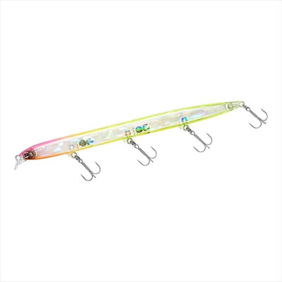 小沼正弥監修。密かに爆れ。バチ、サヨリ、シラス、激スレパターン対応、極細シルエットの水面直下攻略型ぶっ飛びシャローランナー。細身・小型ベイトに偏食している時、激スレ時に最適。バチ、サヨリ、シラスはもとより、イワシや稚アユ等の小型ベイトパターンにベストマッチな極スリムシルエット。高レスポンス&スレに強いタイトウォブンロール+テールスライドアクションで、低速~高速まで全てのリトリーブに対応。ロッドポジションとリトリーブ速度の組み合わせで水面直下~約30cmが有効レンジ。風雨等でI字系スリムプラグが太刀打ちできない状況でも、一枚下のレンジでしっかりアピールできる。極細ボディながら磁着重心移動を前後にダブルで搭載し、「スリムミノーは飛ばない」イメージをくつがえす快適なキャスタビリティと立ち上がり性能を両立。★全長:150mm