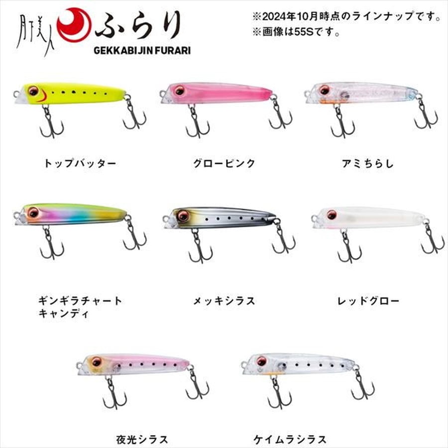 ふらり ふらりとローリングアクション 重心移動搭載リップレスミノー。リップレス構造と落込み式重心移動システムとの相乗効果で、安定した飛距離とキャスト精度を約束。磯場、漁港、サーフなどあらゆるフィールドをカバーすることができる。タダ巻きでは、水面直下15cm前後を、自然なアピールでふらりふらりとローリングアクション。ハイプレッシャー時でも違和感なくバイトに至らせることができる。また、バイトの際に弾かれにくいスローフローティング設定なので、リーリングを止めて潮流に漂わせて食わせるアプローチも可能。スローフローティングで浮き上がりにくい性能と、ふらりローリングアクションが、メバルの捕食本能を刺激し、引き寄せる。驚異の貫通力を誇るサクサストレブルフック2本仕様のため、ショートバイトが頻発する状況でもフッキングにもちこむことが可能。また、沖の表層をゆっくり引けば、ボートからのピンポイントキャストも可能。★全長:55mm