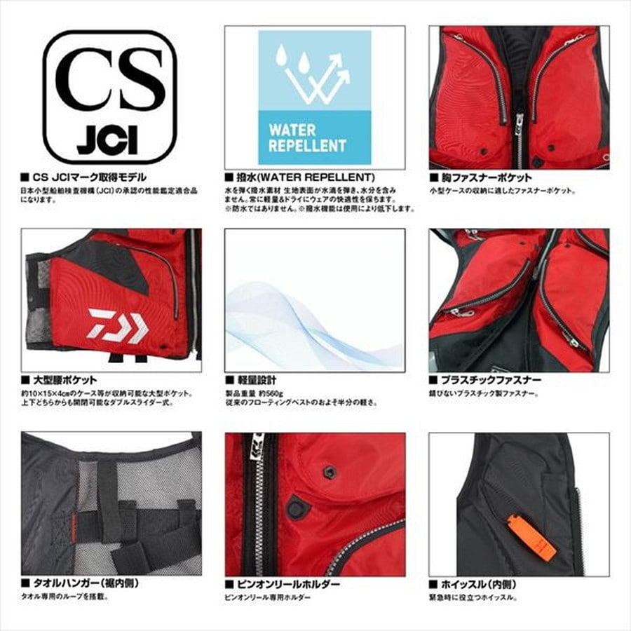 抜群の「軽量さ」がご好評のフローティングベストに新色が追加!近場、ファミリーなど快適なフィッシングライフの始まりにおススメの軽量ライフジャケット。 CSマーク取得モデル(L2)。従来のフローティングベストのおよそ半分の重さを実現。長時間の釣りでの肩負担を軽くした軽量設計を採用。★サイズ:フリー