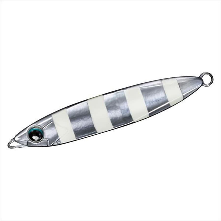 タチウオジギングゲーム対応センターバランス設計。タチウオの捕食行動を研究し、行き着いたセンターバランス設計。鋭く研ぎ澄まされたヘッドにより引き抵抗大幅軽減。アングラーの疲労を抑えながら、刻一刻と変化する食わせの間に柔軟に対応できる。ジャーク時の素直なフォールアクションでジグが横向きになり違和感無くタチウオが口を使う。タチウオの鋭い歯にもはがれにくいHD塗装を採用。フックは別売りの「鏡牙フックSSバラシレストレブル&クワトロ」がベストマッチ。★全長:120mm