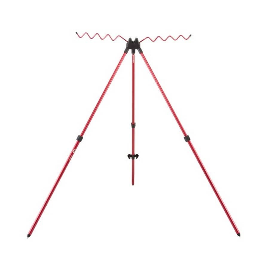 高安定・高剛性 ダイワの三脚。広開脚と高剛性を両立させる新構造により一層安定性が向上。脚部は上部が細く下部が太い逆テーパー形状、異物や砂を噛みこみにくい設計。波型アーム部は角度・波サイズを調整し竿の置きやすさが向上。軽量高強度な強化アルミニウム素材採用。脚の長さはワンタッチレバーで簡単に調整可能。脚の先端は新形状スパイクピンを採用することで、地面への食い付き性能が向上。収納時に3本の脚をまとめる脚ホルダー兼スパイクカバーは脱落や紛失が無い構造。強靭な水汲みバケツ用ステンレスフック採用メンテナンスに便利なパイプ排水穴付き。収納・保管に便利なメッシュバッグ付き。