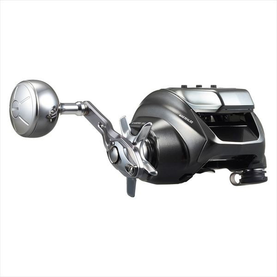 軽さは感度「TOUGH LIGHT MONSTER」。軽量570g・NEW JOGパワーレバー・高耐久MAGMAX-Gモーターで電動ゲームの世界がより快適に。手持ちで快適な軽量コンパクトボディー自重570g。指掛かりの良い斜め形状のアルミ製JOGパワーレバーは、ワンハンド直感操作に更なる快適性をもたらせた。またレスポンスの良い巻上力と高耐久のMAGMAX-Gモーター(3年保証)を搭載。高速落下/巻上速度・巻上力に磨きをかけ、電動ジギングにも対応。手巻き性能において、HYPERDRIVEDIGIGEAR(ドライブギア+ピニオンギア)採用で高負荷でも滑らかな回転フィーリングを実現。ハンドル1回転87cm、ジギングでの誘いも専用リール同様のレスポンス。スタイリッシュな光輝シルバーデザインは、シーボーグの未来を奏でる証。電動モバイルセッティングも対応し、電動ゲームの世界がより快適に。