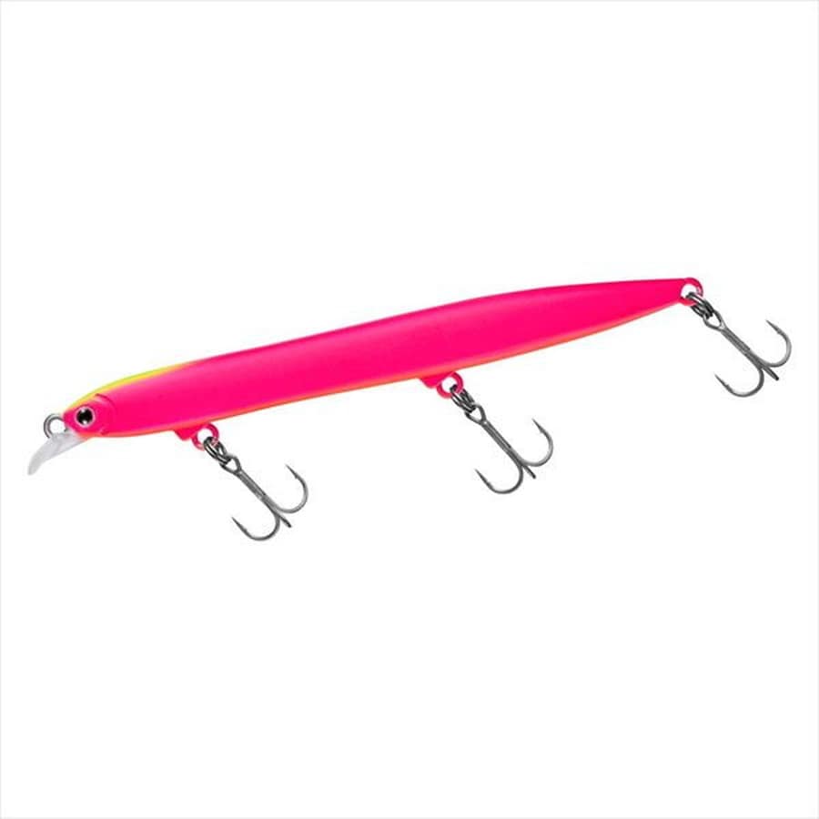 小沼正弥監修。密かに爆れ。バチ、サヨリ、シラス、激スレパターン対応、極細シルエットの水面直下攻略型ぶっ飛びシャローランナー。細身・小型ベイトに偏食している時、激スレ時に最適。バチ、サヨリ、シラスはもとより、イワシや稚アユ等の小型ベイトパターンにベストマッチな極スリムシルエット。高レスポンス&スレに強いタイトウォブンロール+テールスライドアクションで、低速~高速まで全てのリトリーブに対応。ロッドポジションとリトリーブ速度の組み合わせで水面直下~約30cmが有効レンジ。風雨等でI字系スリムプラグが太刀打ちできない状況でも、一枚下のレンジでしっかりアピールできる。極細ボディながら磁着重心移動を前後にダブルで搭載し、「スリムミノーは飛ばない」イメージをくつがえす快適なキャスタビリティと立ち上がり性能を両立。★全長:95mm