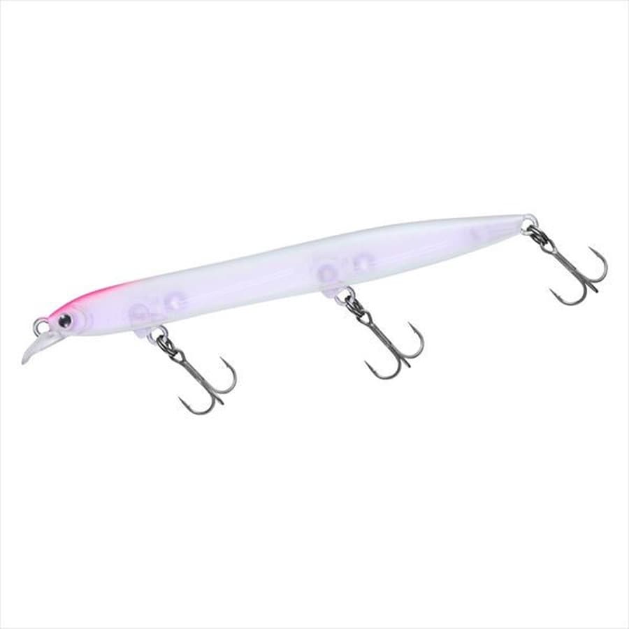 小沼正弥監修。密かに爆れ。バチ、サヨリ、シラス、激スレパターン対応、極細シルエットの水面直下攻略型ぶっ飛びシャローランナー。細身・小型ベイトに偏食している時、激スレ時に最適。バチ、サヨリ、シラスはもとより、イワシや稚アユ等の小型ベイトパターンにベストマッチな極スリムシルエット。高レスポンス&スレに強いタイトウォブンロール+テールスライドアクションで、低速~高速まで全てのリトリーブに対応。ロッドポジションとリトリーブ速度の組み合わせで水面直下~約30cmが有効レンジ。風雨等でI字系スリムプラグが太刀打ちできない状況でも、一枚下のレンジでしっかりアピールできる。極細ボディながら磁着重心移動を前後にダブルで搭載し、「スリムミノーは飛ばない」イメージをくつがえす快適なキャスタビリティと立ち上がり性能を両立。★全長:95mm