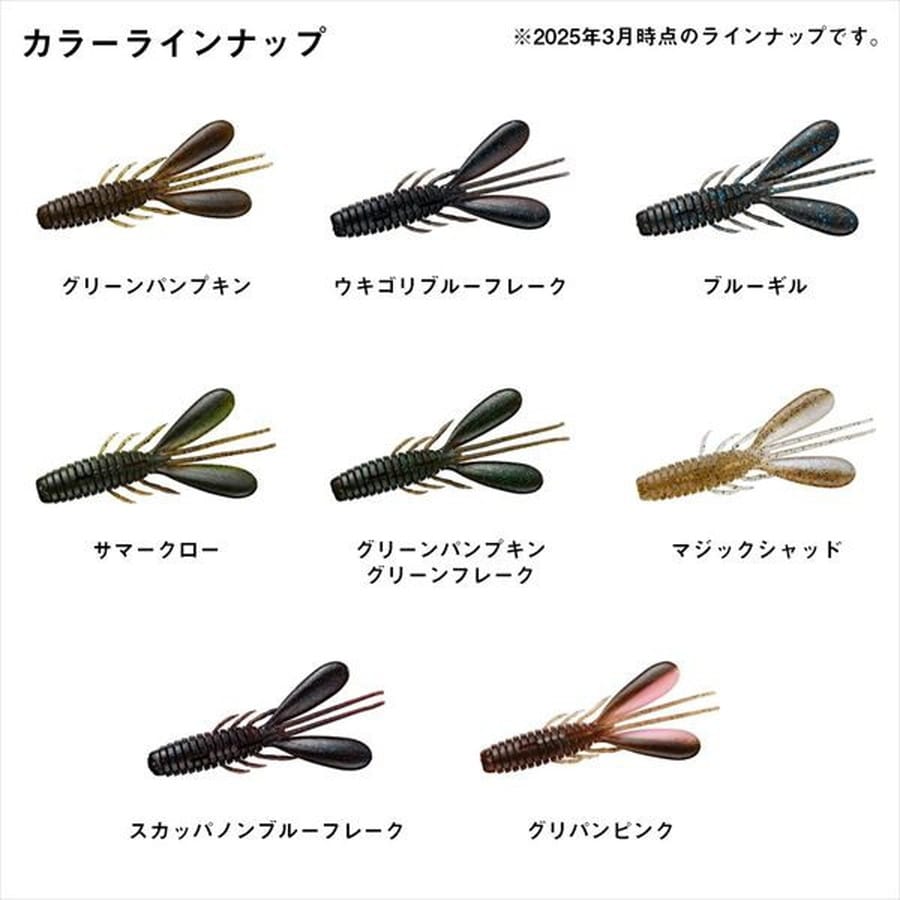 深溝逆リブボディで艶めかしくアピールするオカッパリ汎用ホグワーム。ムーブベイト譲りの深溝逆リブボディは艶めかしいアクションに貢献。フッキング時もリブが潰れるため、バイトへ持ち込みやすい。爪は敢えてオーソドックな形状とすることで、ホグ本来のアクションを損なわない設計とした。フリーリグやジグストに相性が良く、アクションの余韻で魚に口を使わせる。深溝逆リブボディ。ソフトマテリアル。2.3インチはBHミニジグ、3.3インチはBHマルチジグ、カバージグを相性抜群★全長:3.3inch