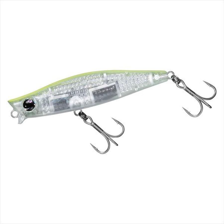 大野ゆうき監修モデル。ベイエリア、河川攻略に最適なスローピッチシンキングペンシル「ガルバ73S」が、レーザーインパクト搭載でブラッシュアップ!レーザーインパクトは、3Dマルチ反射構造により「イワシ」等と同様の高輝度反射光を多方向に放ち、「本物の誘いを遠くまで」を実現。更に、泳いでいる時の反射光の明滅まで再現。夜間や日陰のわずかな光でもベイトフィッシュと同様、昼夜・場所を問わず光でターゲットにアピール。★全長:73mm