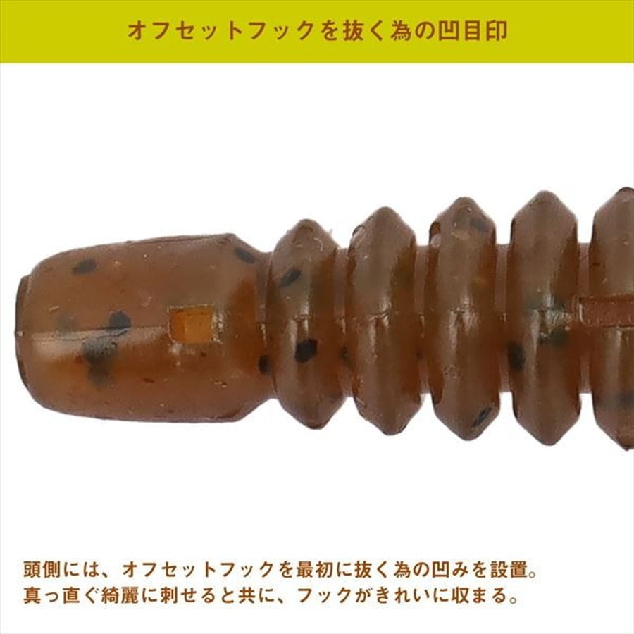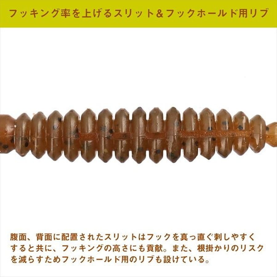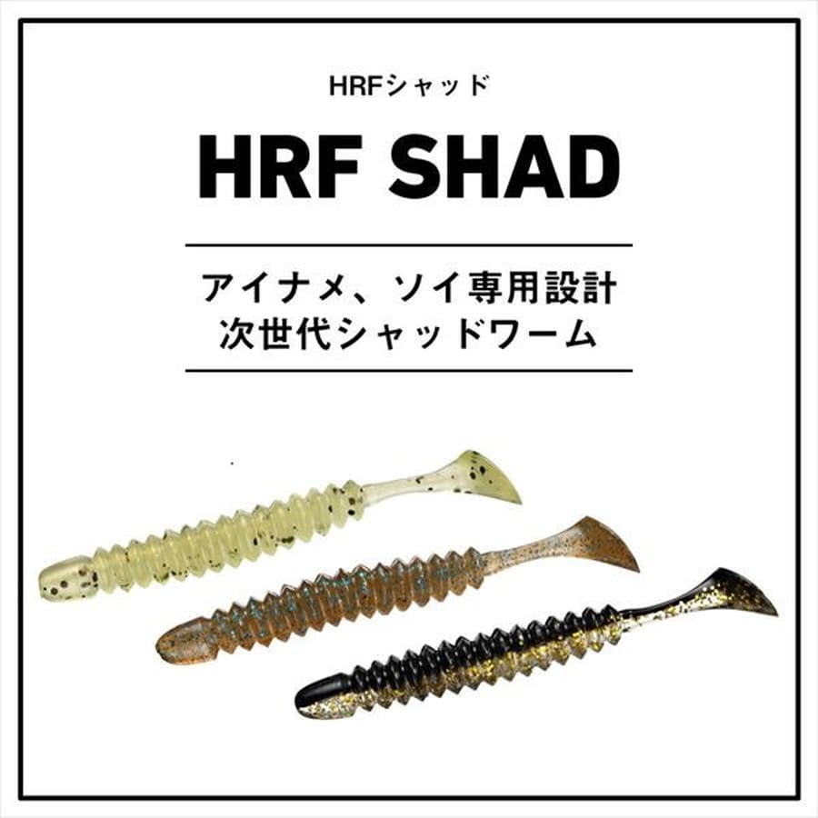 アイナメ、ソイ専用設計!次世代シャッドワーム。HRFシャッドは昨今のタフ化するアイナメ、ソイに照準を当てたシャッドテールワームだ。細身のリブボディは空気抵抗を軽減させつつも水絡みをUPさせる形状となっている。シャッドテールに関しては、肉厚のテールにすることで、サイズ感と相反する強いアクションが出せる。また、小さいルアーでアクションを強くするとボディが回転するが、HRFシャッドはボディとリブを最適なサイズ感で設計。低速から高速リトリーブまで、ボディが回転せずアクションが可能だ。集魚成分はアミノXだけでなく、数種類のフレーバーとオイルを独自配合。魚までの距離をぐっと近づけるHRFホグの威力を是非体感してほしい。