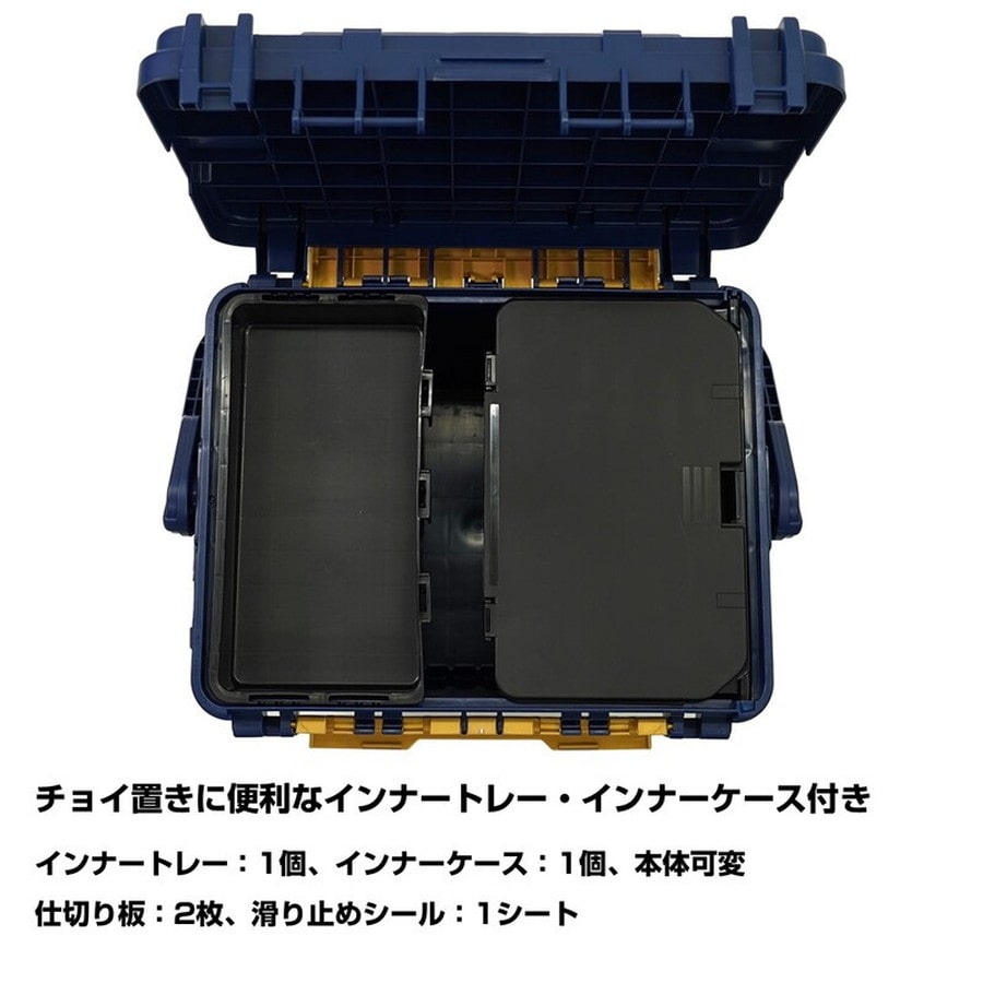 ハンドルストッパー搭載で持ち運びもラクラクになった質実剛健、座れるタックルボックス。付属品とセットでSPカラーで登場!ハンドルストッパー搭載!持ち運び時にバランスが崩れず持ち運びラクラク ●タックルボックスとしての収納性はもちろん、堅牢性を備えた座れるタックルボックス ●使い勝手のよい両開きタイプのフタで、開けた時フタが90度で止まる ●ロッドスタンドTB30 2個付き ●TBインナーストッカー12L 1個付き ●プライヤーなどの小物をチョイ置き出来るインナートレー・インナーケースを内蔵 ●収納するものに合わせてスペースを区切れる可変仕切り板が2枚付属 ●本体サイドにはロッドスタンドTBなどに対応した多目的ホルダーを装備しスタイルに合わせて機能を拡張可能 ●滑り止めシール付き
