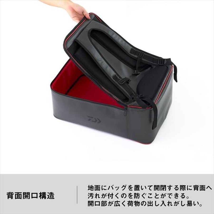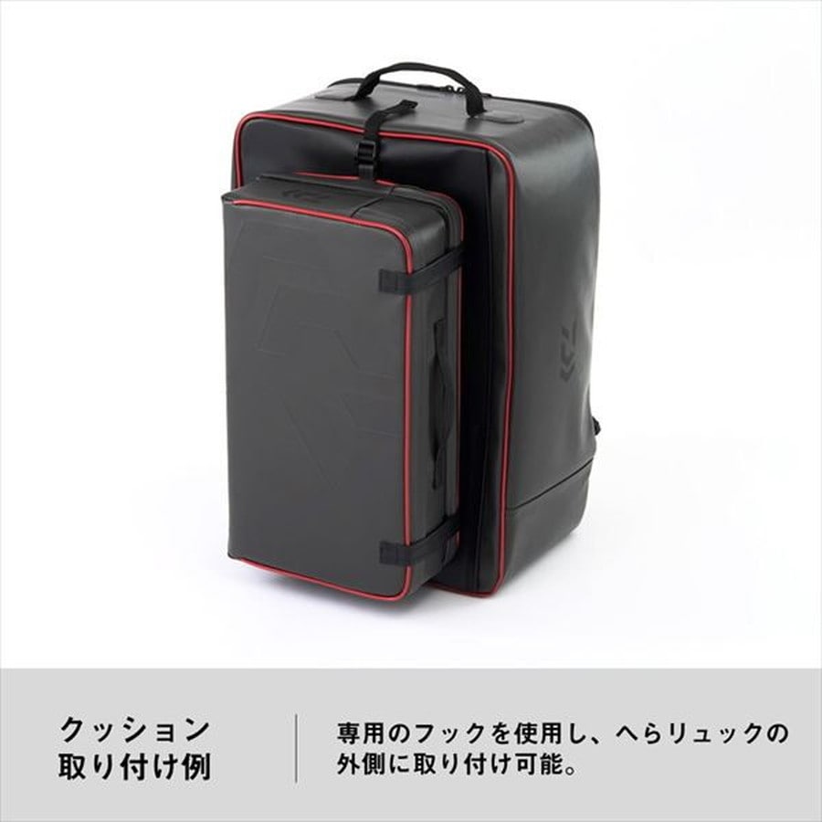 両手が開くので複数の荷物を運ぶ際に便利なリュックタイプ!大容量の本体収納部を備え、様々なフィールドに対応する ◆開閉時にショルダーベルトなどが汚れにくい背面開口構造を採用 ◆クッション取り付け用フックパーツ付き ◆大容量の本体収納部を備え、様々なフィールドに対応するリュックタイプ ◆水や汚れが落としやすいPVC素材 ◆肩や腰にやさしいメッシュパッド背面を装備 ◆小物の収納に便利なスリットポケット付き