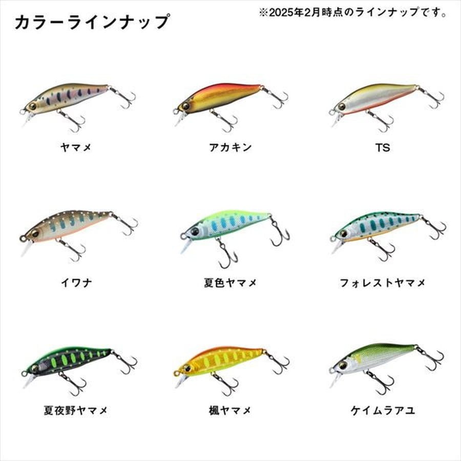 基本性能を徹底的に研ぎ澄ませたハイパフォーマンスミノー◆44S・・・強い流れや中流域のガンガン瀬までもしっかり泳ぎ、源流~中流域まで幅広く対応。ハイピッチ平打ちアクションにより神経質な賢い鱒にも口を使わせる。小型ながら源流~中流、大鱒まで対応可能なオールラウンダーのコンパクトミノー。魚に違和感を与えない柔らかな光の反射をするアルミ貼り。熟練の職人が1枚1枚貼るMADE IN JAPANクオリティ。★全長:44mm