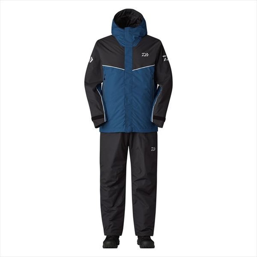 大盛中綿でしっかり温かい。磯・船用防寒モデル。防寒中綿を大盛り(通常の1.2倍)の120gを詰め込んだスーツ。安心感のある生地厚の防水透湿性に優れたRAINMAXの2層素材を採用。レトロなスポーティーさをデザインに落とし込み、暗闇でも目立つリフレクターパイピングを使用。袖口からの浸水を軽減するカフスを内袖に搭載し、衣服内の濡れを最小限に抑える。フローティングベストを着た際にも目立つよう、両肩にリフレクターロゴを配置。袖口回りは汚れが目立ちにくいブラック仕様。ポケットには水の浸入を軽減する止水ファスナーを採用し衣服内の濡れを最小限に抑える。パンツがずり落ちにくいサスペンダー付きモデル。