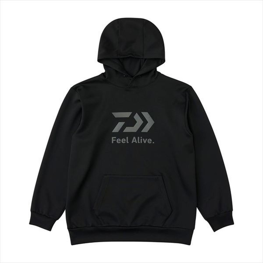 レインウェアの中着として使い勝手の良いスウェットフーディー。シンプルで普段着にも着用しやすいスウェット。加えて肌面側には遠赤外線を発するダンロテック素材を使用し、極寒時の釣りをサポートする。極寒時に便利なフード付きで、フード周りは調節可能なアジャスター付き。