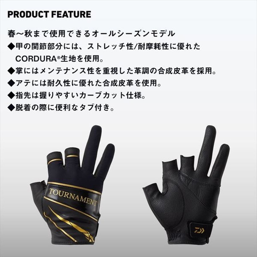 フィット感とメンテナンス性を両立したトーナメンターに向けた最上位モデル。春~秋まで使用できるオールシーズンモデル。甲の関節部分には、ストレッチ性/耐摩耗性に優れたCORDURA生地を使用。掌にはメンテナンス性を重視した革調の合成皮革を採用。また、アテには耐久性に優れた合成皮革を使用。指先は握りやすいカーブカット仕様。また、脱着の際に便利なタブ付き。