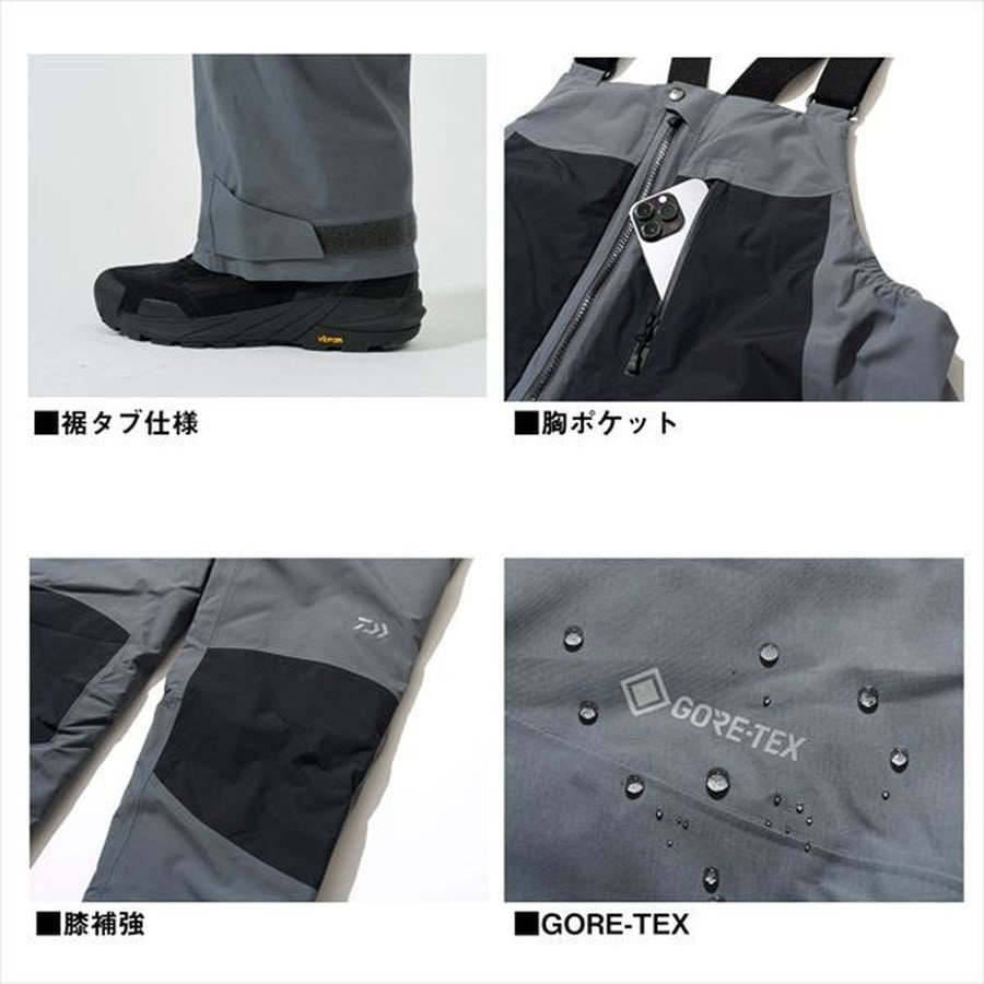 極寒期におすすめのウィンタービブパンツ。表地は安心感のある生地厚のGORE-TEX Productsの2層素材を採用。120gの特盛中綿入りで極寒の季節にも耐えうる保温性を保ちながらも、GORE-TEXの透湿性により蒸れずに快適な着用感。環境負荷の少ないフッ素フリー撥水剤を使用したモデル。膝部は膝を付いた時や擦れに強い二重仕様。ビブ仕様で腰回りまで暖かく、安心感のある仕様。