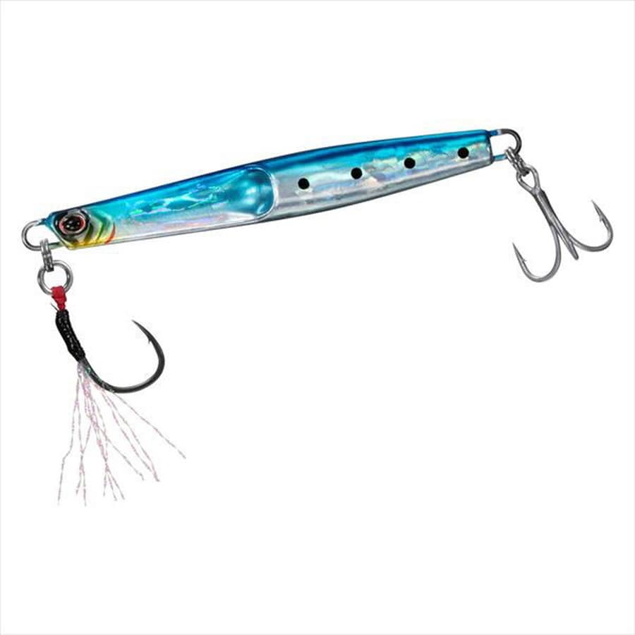 スキッピング、バブリング、水平フォール、テールスイングアクションを一つでこなすバーサタイルメタルジグ!カップの作用で表層では、泡を含みながらスキッピングアクションが可能。バブル効果により、魚に見切らせずリアクションバイトを誘発。泳層を落とせばリップ代わりとなり、テールスイングアクションに移行。また、ジャーク時の動きすぎ、飛びすぎを制御する。ショア・オフショアと場所を選ばず、ターゲットの反応レンジに即時に合わすことがができ、どのレンジでも釣りを成立させてしまうのがジャグジグである。