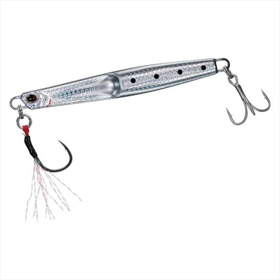 スキッピング、バブリング、水平フォール、テールスイングアクションを一つでこなすバーサタイルメタルジグ!カップの作用で表層では、泡を含みながらスキッピングアクションが可能。バブル効果により、魚に見切らせずリアクションバイトを誘発。泳層を落とせばリップ代わりとなり、テールスイングアクションに移行。また、ジャーク時の動きすぎ、飛びすぎを制御する。ショア・オフショアと場所を選ばず、ターゲットの反応レンジに即時に合わすことがができ、どのレンジでも釣りを成立させてしまうのがジャグジグである。