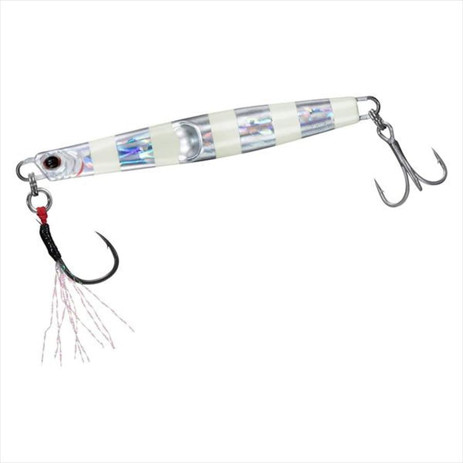 スキッピング、バブリング、水平フォール、テールスイングアクションを一つでこなすバーサタイルメタルジグ!カップの作用で表層では、泡を含みながらスキッピングアクションが可能。バブル効果により、魚に見切らせずリアクションバイトを誘発。泳層を落とせばリップ代わりとなり、テールスイングアクションに移行。また、ジャーク時の動きすぎ、飛びすぎを制御する。ショア・オフショアと場所を選ばず、ターゲットの反応レンジに即時に合わすことがができ、どのレンジでも釣りを成立させてしまうのがジャグジグである。