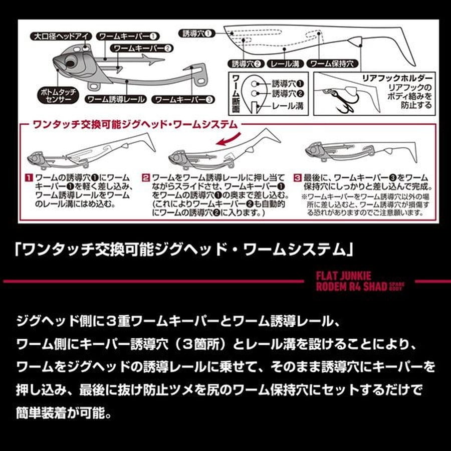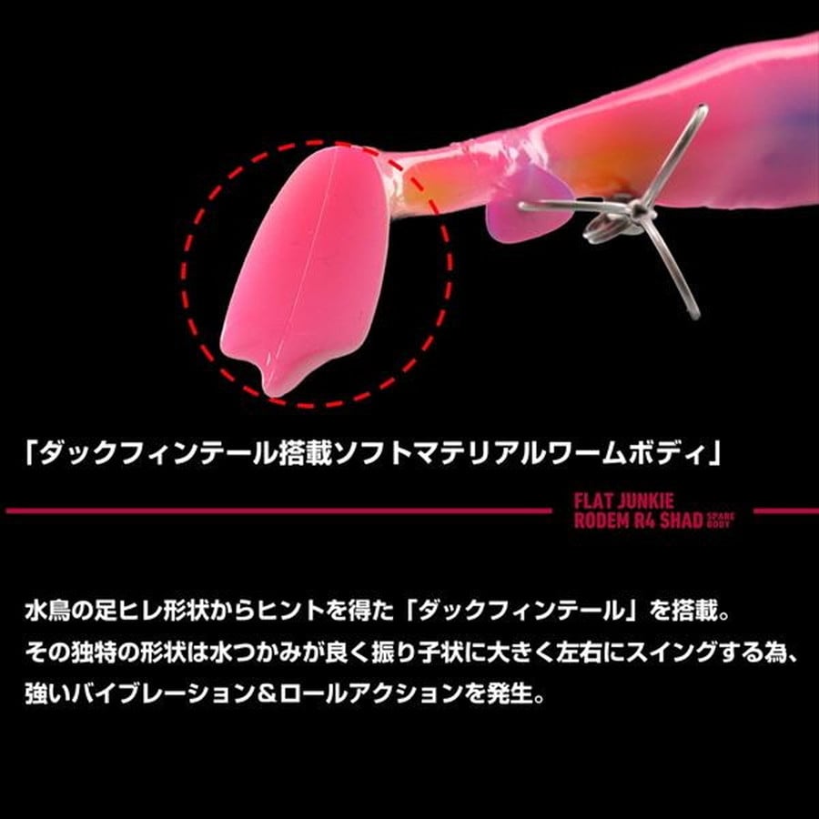 ヒラメ、マゴチを魅了するワーム+ジグヘッドセット「RODEM R」専用スペアボディ! 誘導穴・誘導溝付きワームボディ採用によりワンタッチでボディ交換可能。朝夕マズメの貴重なチャンスを逃さない!食い渋りに強いベイトフィッシュそっくりのリアルシェイプデザイン。