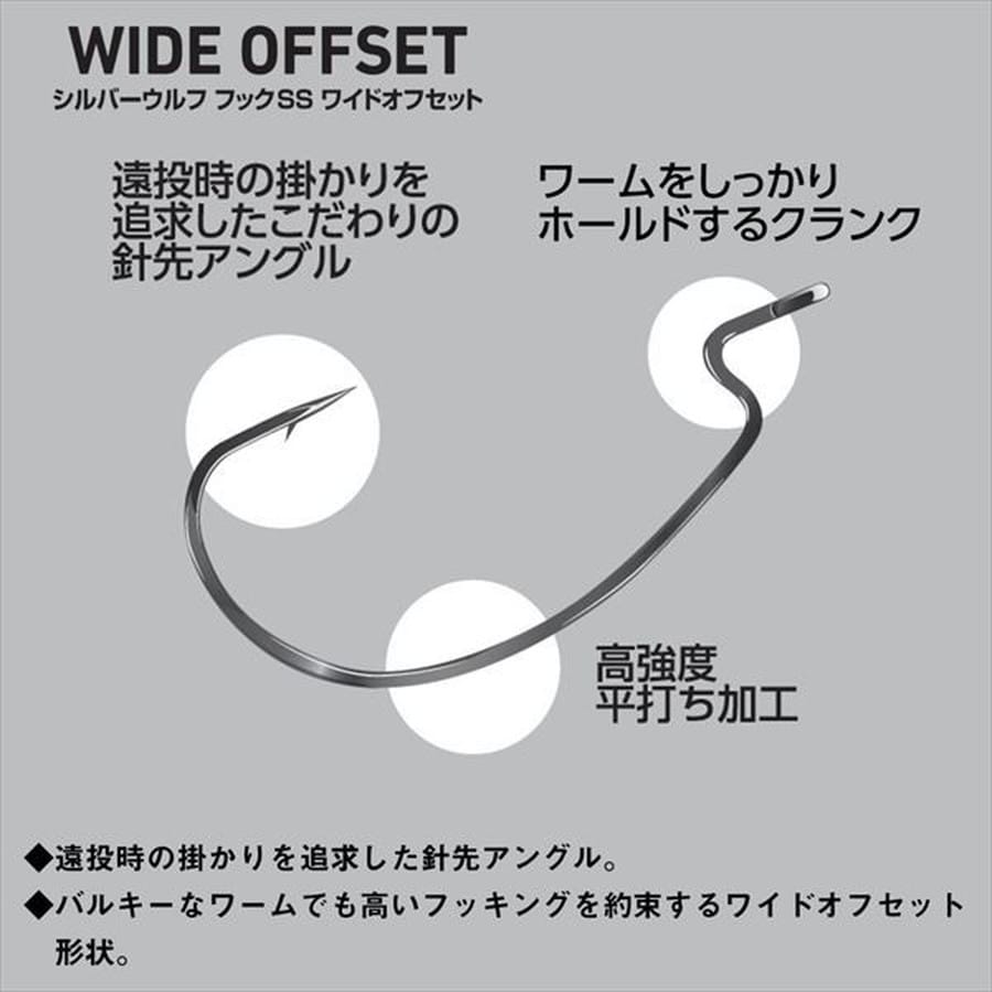 フリーリグスタイルのチニング専用ワームフック。●ワイドオフセット。遠投時の掛かりを追求した針先アングル。バルキーなワームでも高いフッキングを約束するワイドオフセット形状。ヘビーユーザーに向けたお得な徳用パック。
